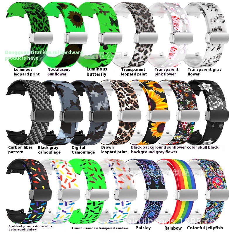 Suitable For Samsung Watch5 Pro Printed Silicone Strap Watch6/5/4 Magnetic Folding Buckle Smart Watch Strap