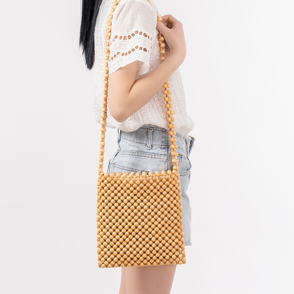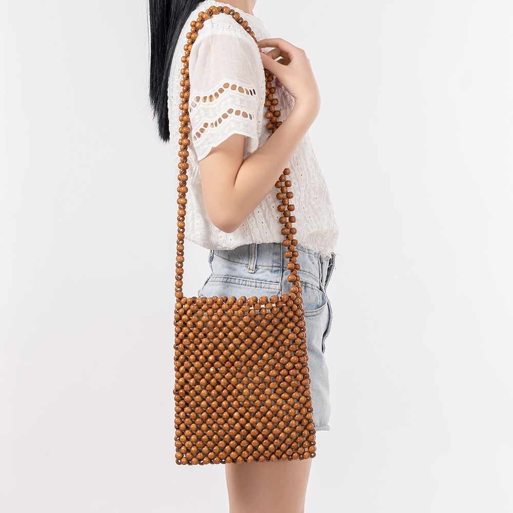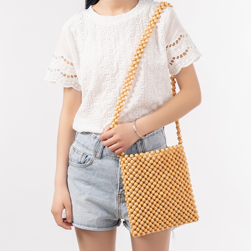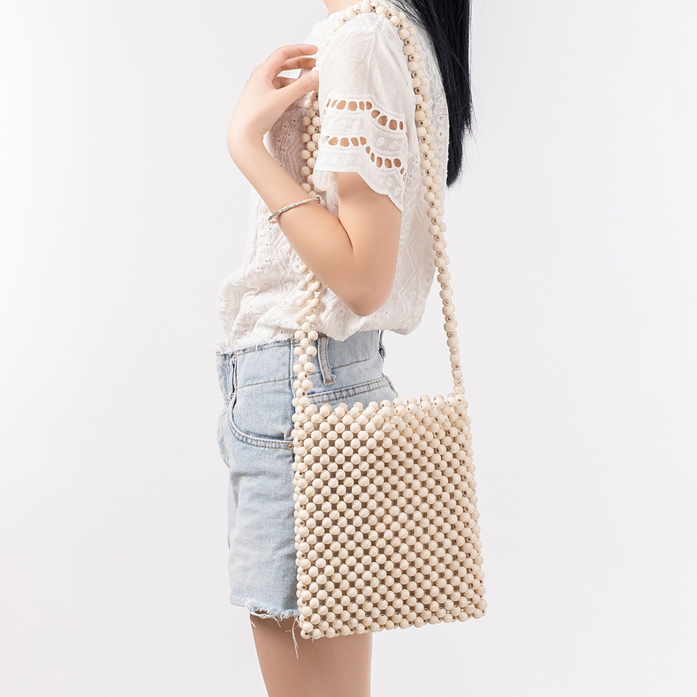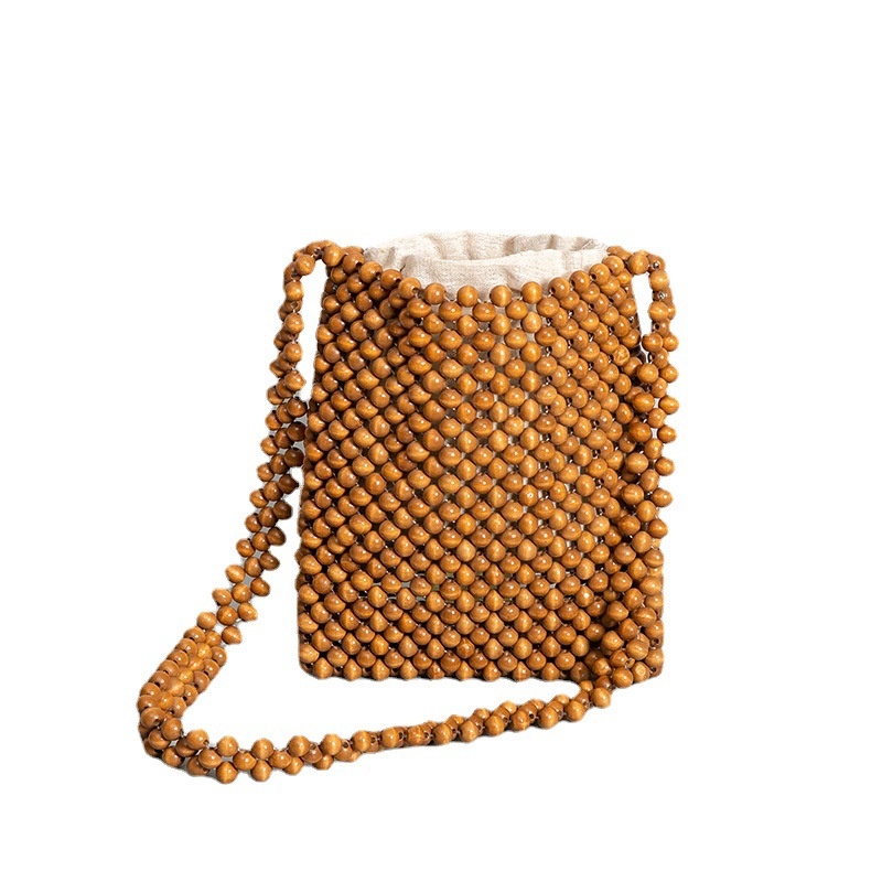 Crossbody Shoulder Bag Women's Summer Niche Design Wooden Bead Bag Commuting Hand-woven Bag Women