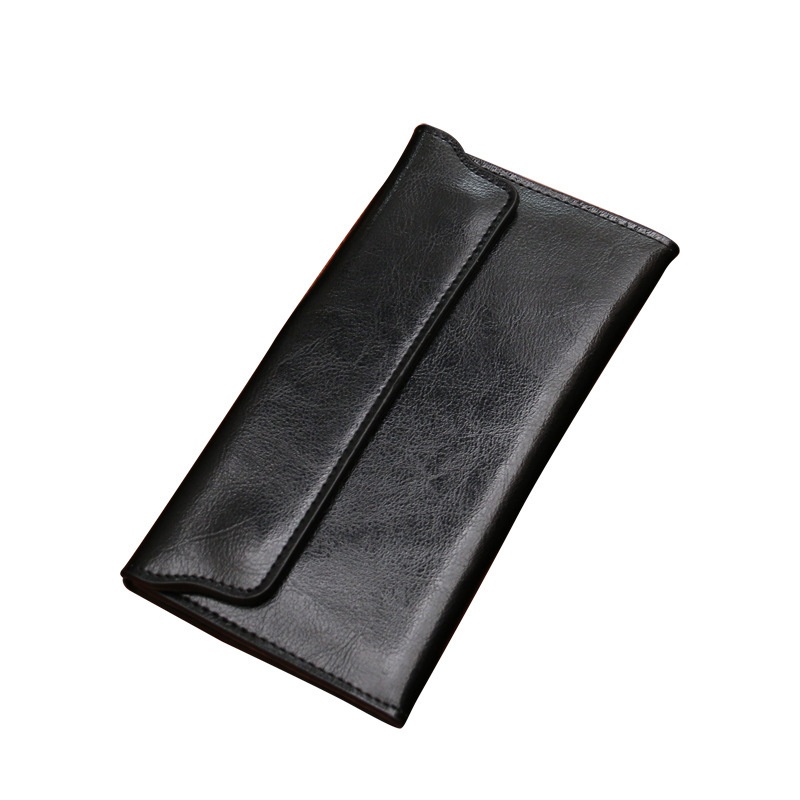 Ladies Long Leather Wallet European And American Long Buckle Simple Business Cowhide Thin Wallet Card