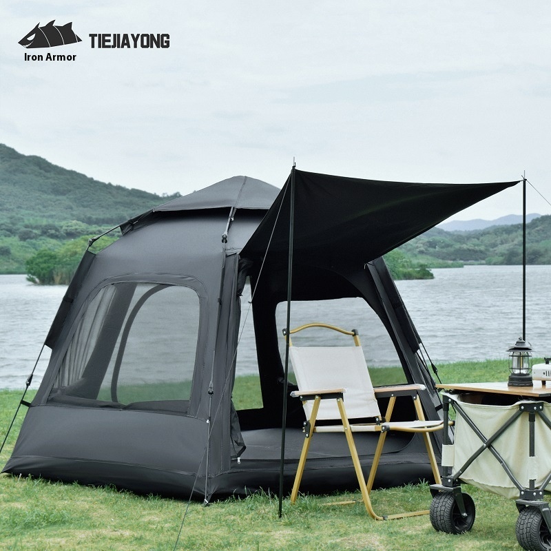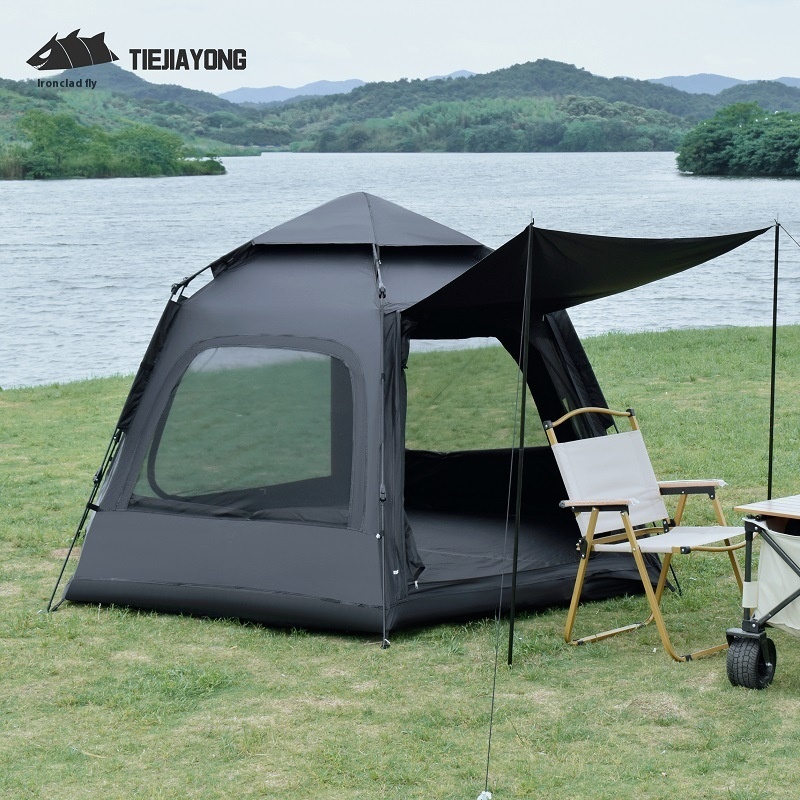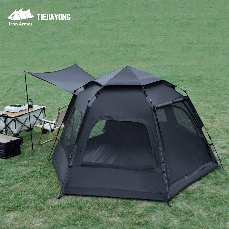 Hexagonal Black Plastic Tent Sun Protection Outdoor Multi-person Large Space Ventilation Camping Beach Camping Fully Automatic Quick Opening Tent