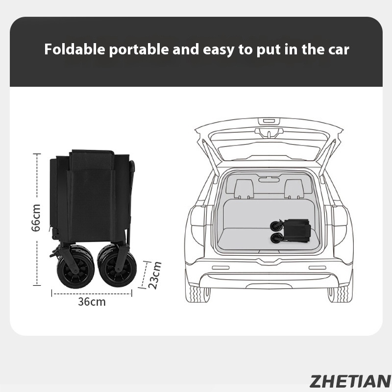 Mogodi Outdoor Camping Car Four-way Folding Large Capacity Trailer Portable Camping Cart Yunji S2 Black