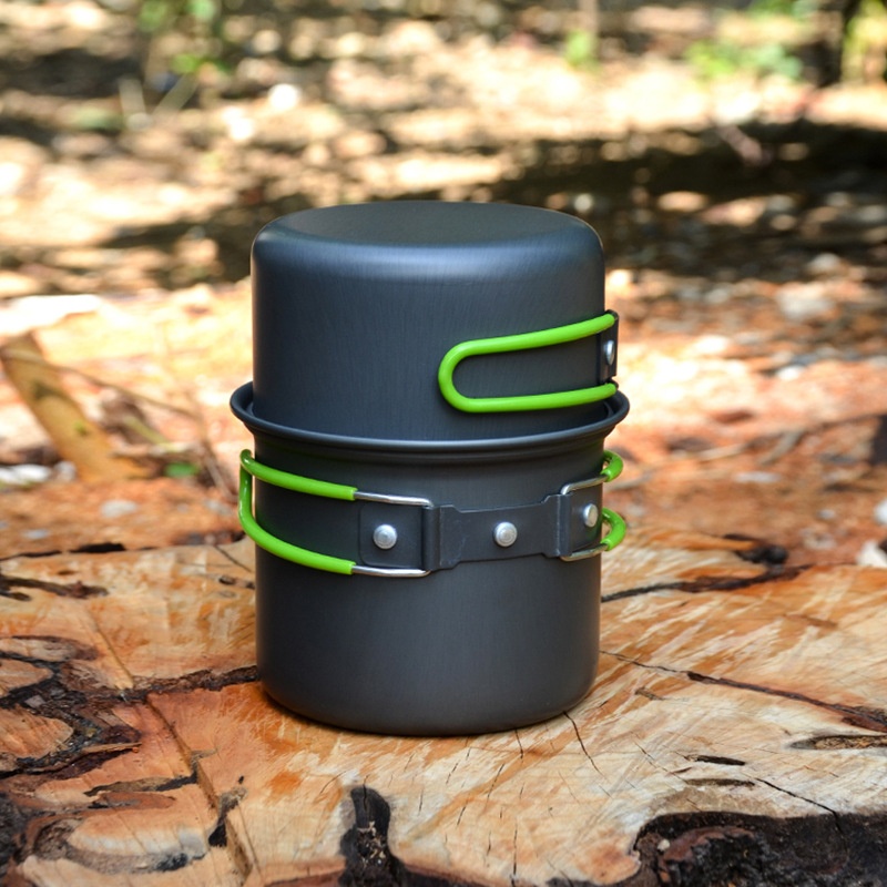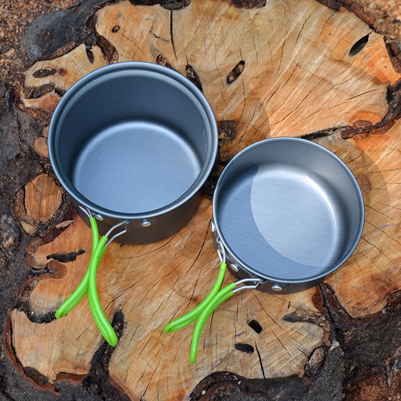 Camping Pot Set Outdoor Camping Tableware Knife Fork Spoon Pot Kitchen Set Portable Picnic Cooker