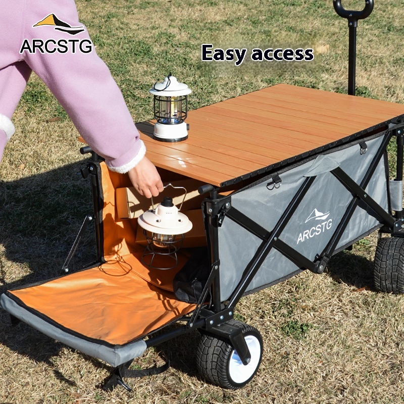 ARCSTGCamping Cart Foldable Outdoor Cart Camp Trailer Luggage Cart Shopping Cart Table Stall