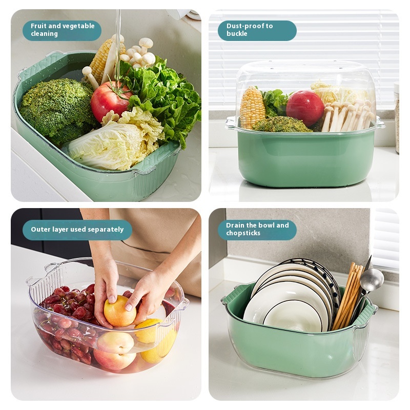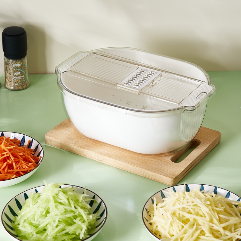 Multifunctional Vegetable Cutting Artifact Double-layer Drain Basket Grater Home Kitchen Potato Cucumber Grater Vegetable Washing Basin