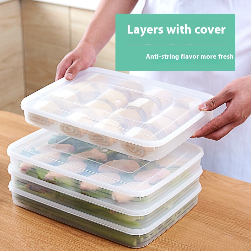 Quick-frozen Dumpling Box Transparent Chinese Dumpling Tray With Lid Microwaveable Barbecue Box Refrigerator Fresh-keeping Storage Box