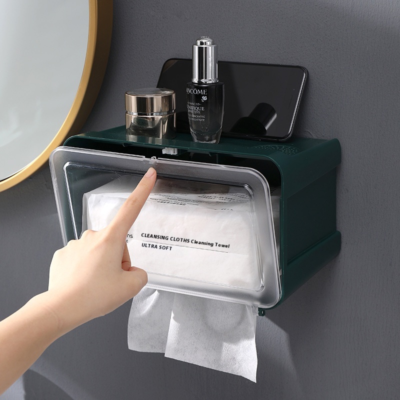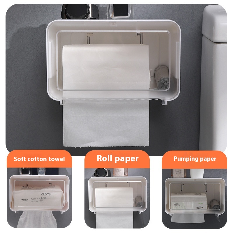 Toilet Tissue Box Plastic Punch-free Toilet Paper Roll Storage Rack Toilet Wall-mounted Waterproof Paper Box