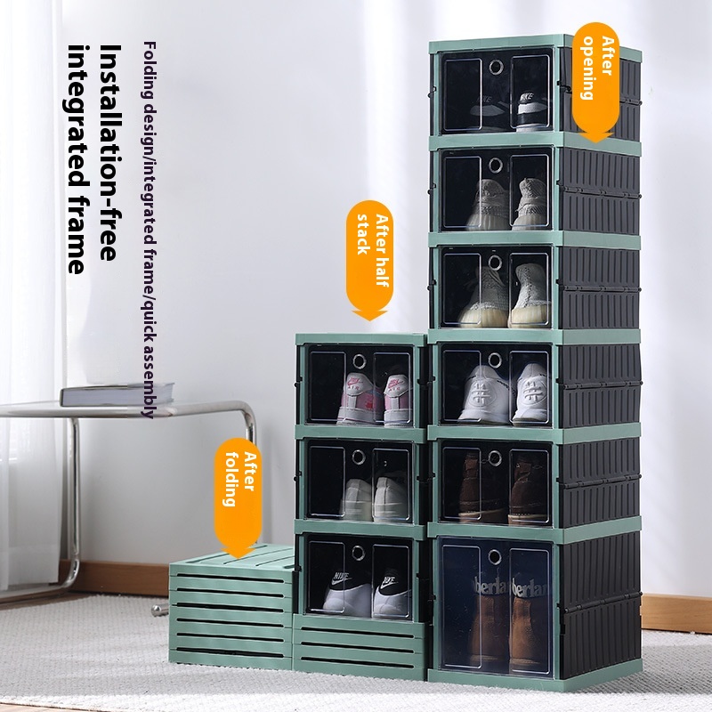 Freetallation Shoe Box Storage Box Transparent Shoe Cabinet Storage Artifact Space-saving Foldable Plastic Simple Shoe Rack
