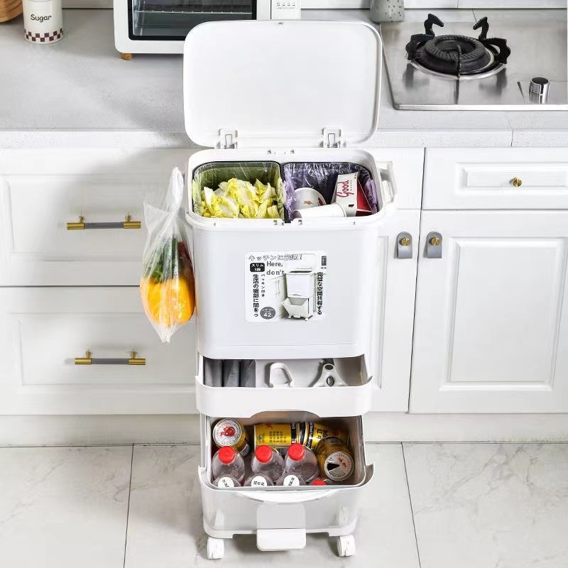 With Inner Barrel Double Garbage Classification Trash Can Household Large Double-layer Dry And Wet Separation Kitchen Waste Kitchen Pedal Press Type