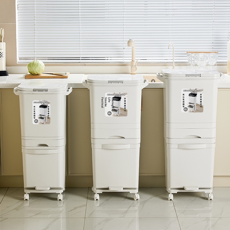 Kitchen Trash Can Household Kitchen Waste Classification With Lid Large Capacity High Double Layer Dry And Wet Separation Foot Large Japanese Style