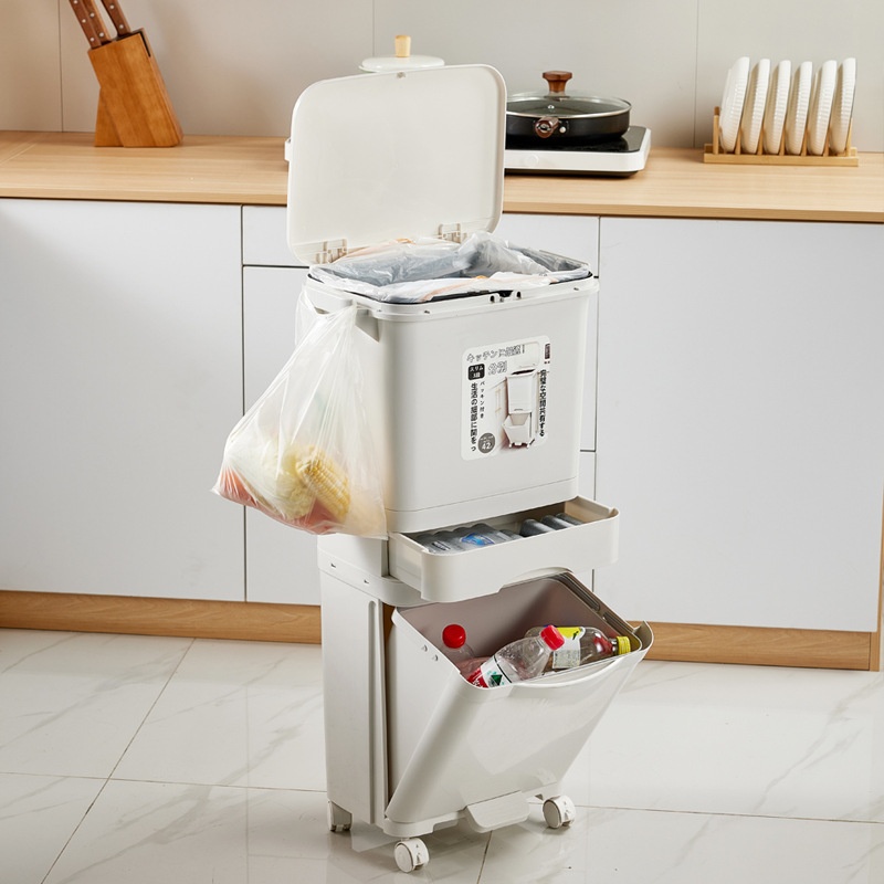 Kitchen Trash Can Household With Lid Integrated Deodorant Large Double-layer Kitchen Waste Dry And Wet Separation Classification Japanese