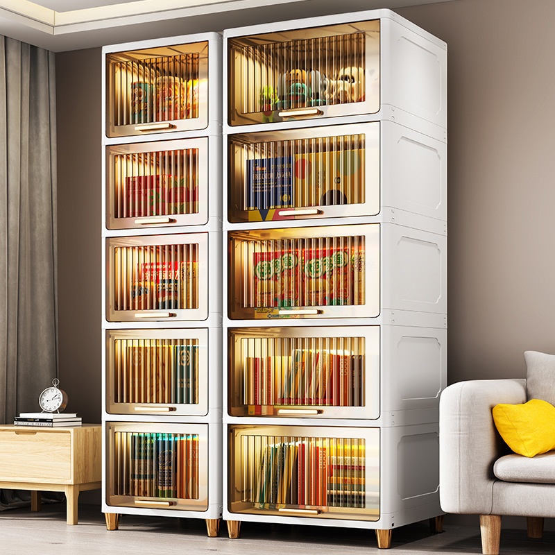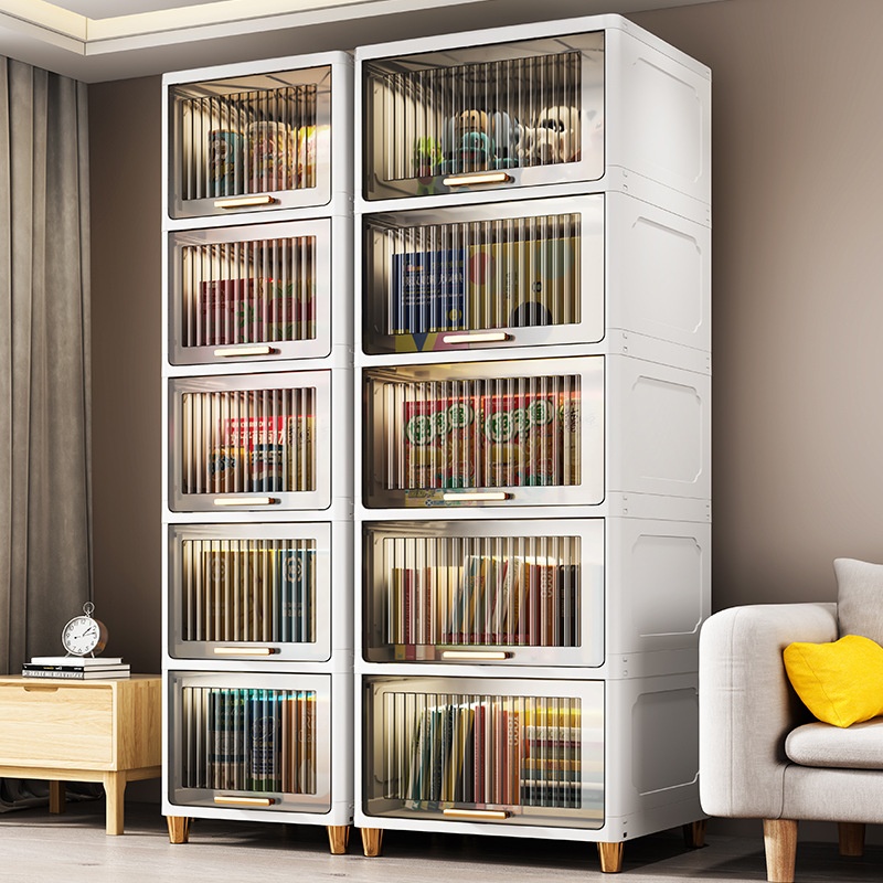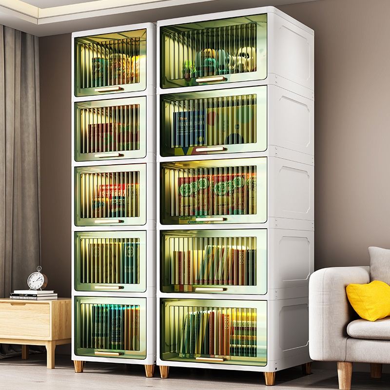 Chao Peng Living Room Storage Cabinet Transparent Storage Cabinet Plastic Flip Assembly Simple Wardrobe Kitchen Sundries Cabinet
