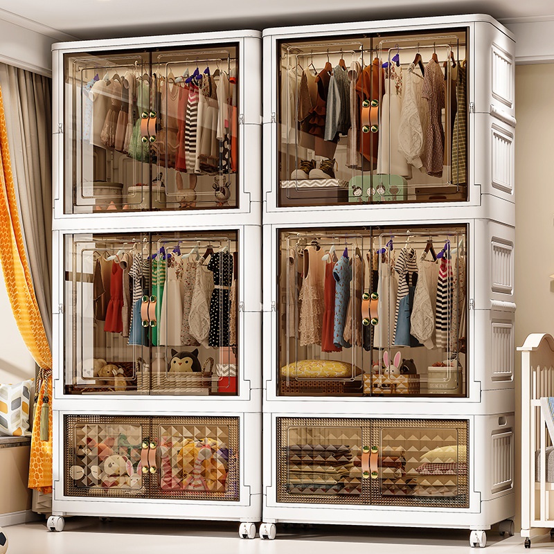 65-75 Folding Cabinet Children's Furniture Storage Cabinet Plastic Storage Cabinet Freetallation Door Wardrobe Children's Wardrobe