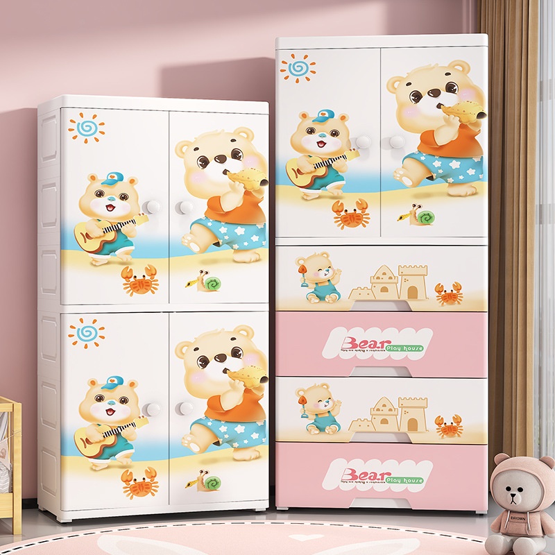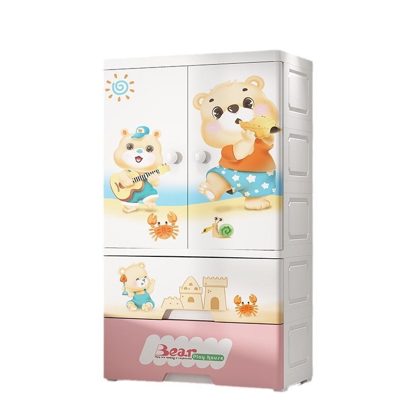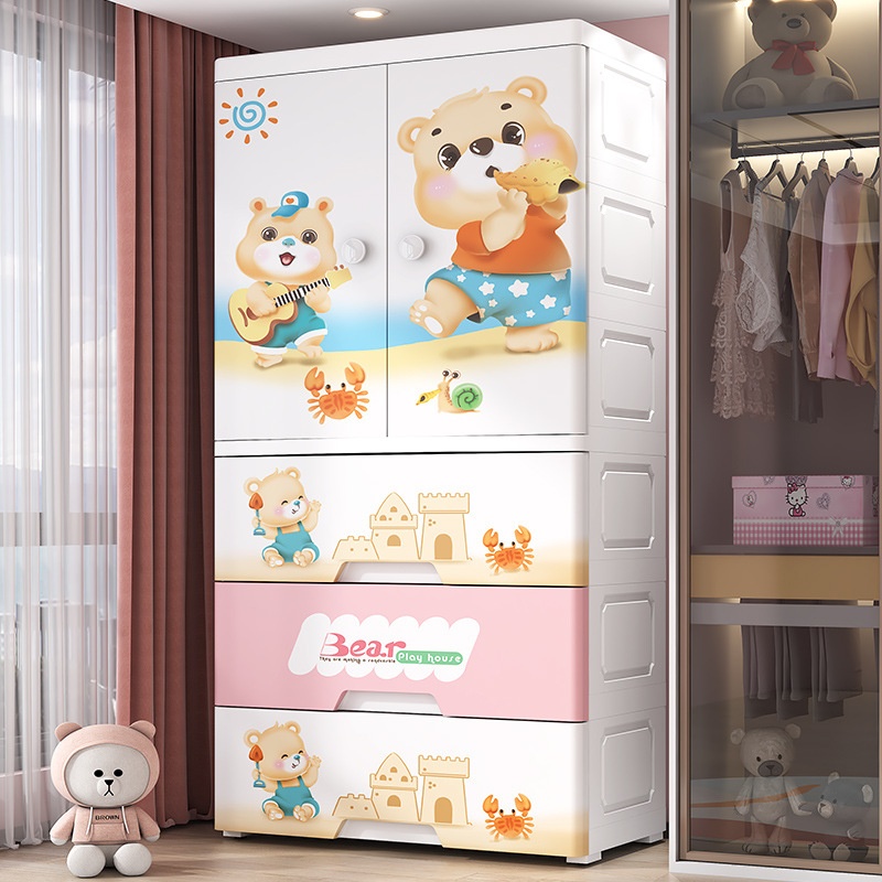 56 Width Cartoon Simple Wardrobe Plastic Door Hanging Clothes Storage Cabinet Assembly Baby Locker Baby Children Wardrobe