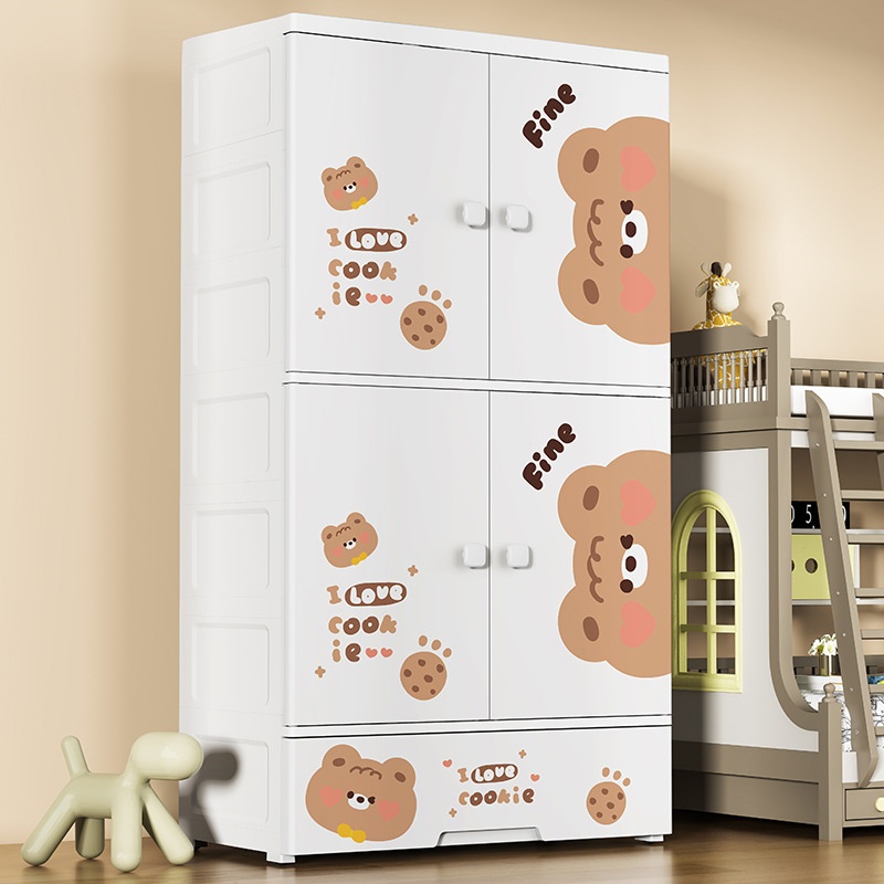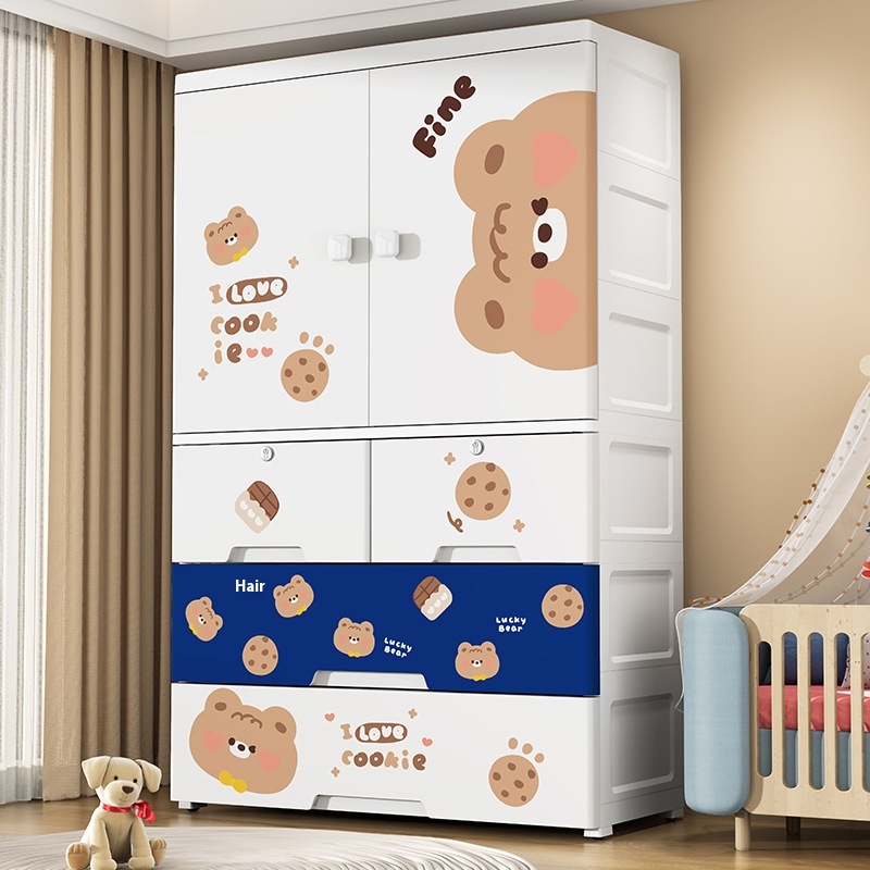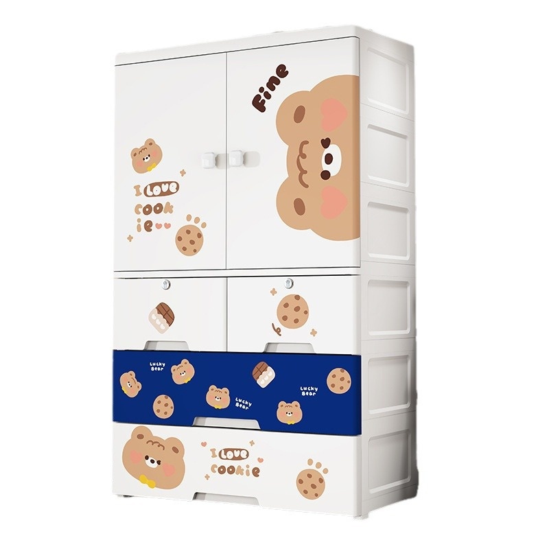 Extra Large Plastic Storage Cabinet Assembled Storage Cabinet Open Door Locker Cartoon Baby Children's Wardrobe