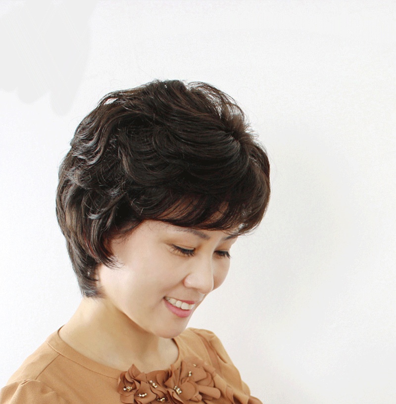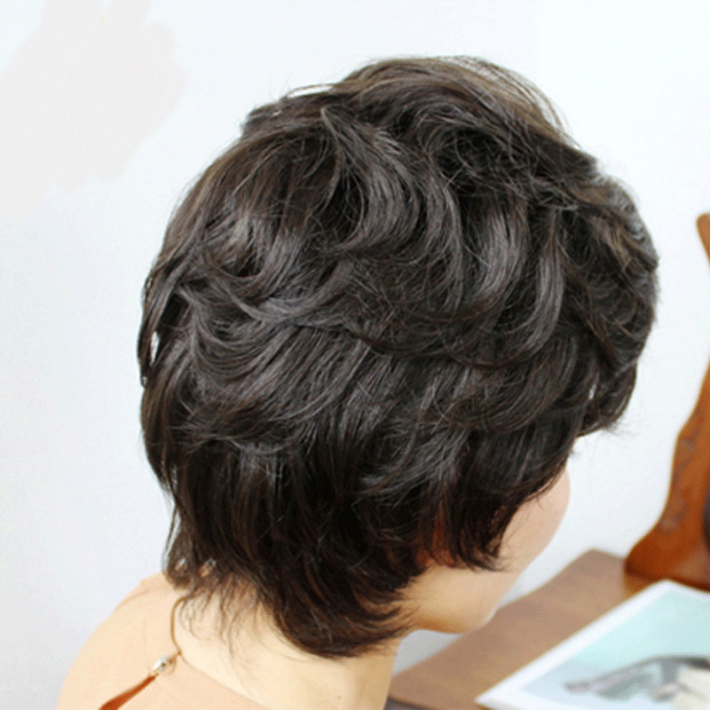 Middle-aged And Elderly Women's Short Hair Wigs For Mothers With Real Hair Women's Full Headset Fluffy Natural Human Hair Wig Sets