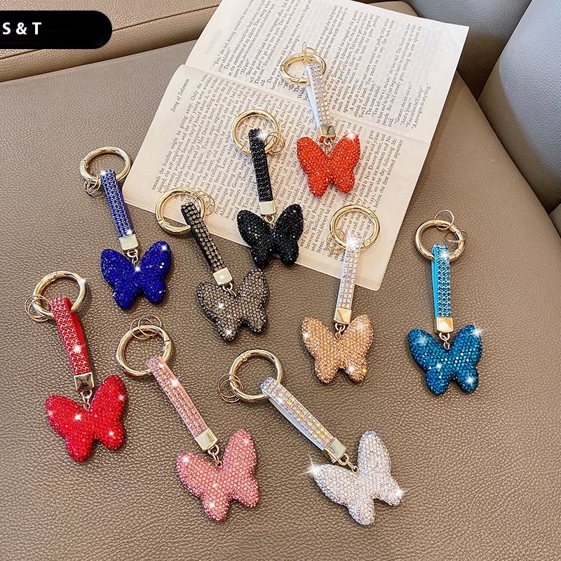 Creative Exquisite Diamond Butterfly Keychain Diamond Female Cute Fashion Exquisite Key Chain Bag Pendant Car Pendant