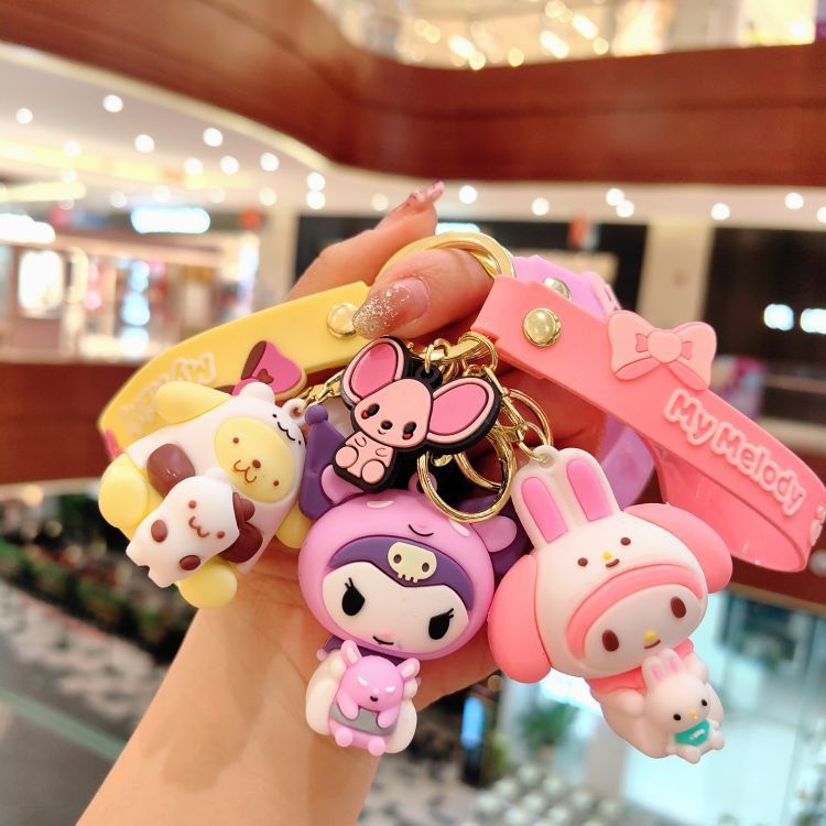 Cartoon Epoxy Sanrio Keychain Cute Kuromi Couple Doll Car Keychain Bag Pendant Gift