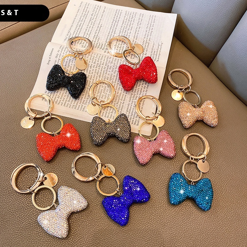 Bowknot Diamond Keychain For Girls Cute Car Keychain Girl Bowknot Hanging Buckle Female Bag Pendant