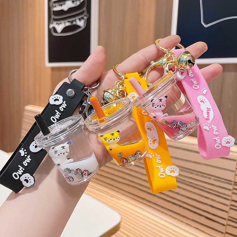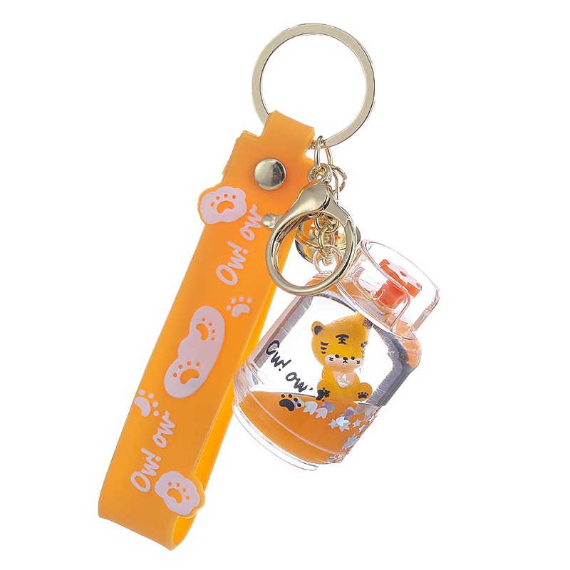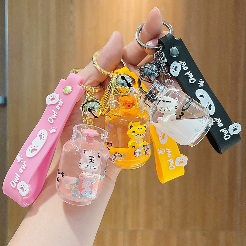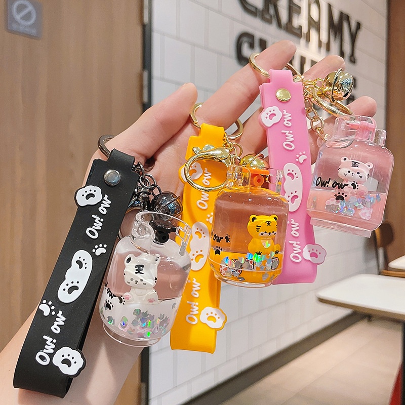 Creative Floating Doll Oil Tiger Keychain Acrylic Quicksand Bottle Keychain Exquisite Car Pendant