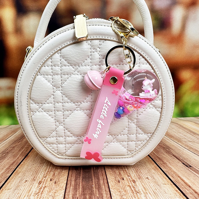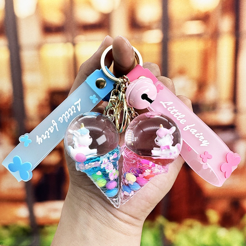 Internet Celebrity Unicorn Keychain Female Exquisite Cute Ice Cream Crystal Quicksand Bottle Pendant School Bag Pendant Small Accessories