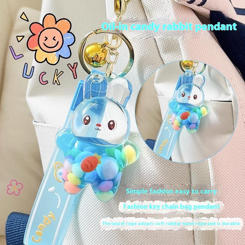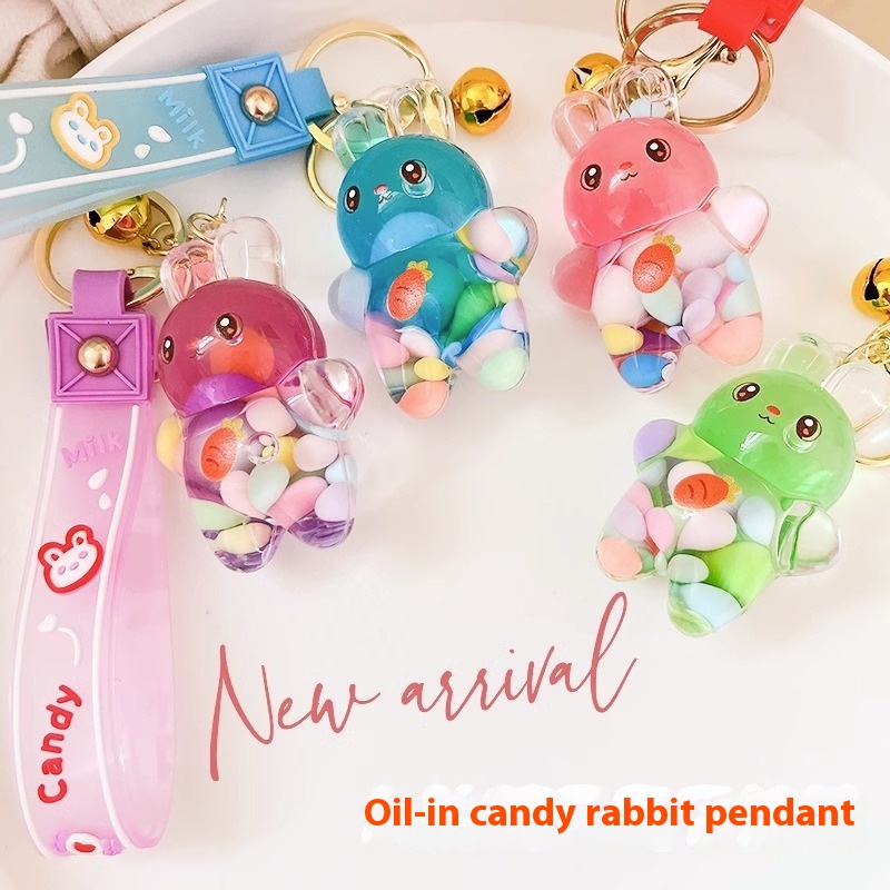 Cute Pendant Creative Exquisite Schoolbagy Fashion Couple Gift Candy Bean Keychain Rabbit Oil Keychain