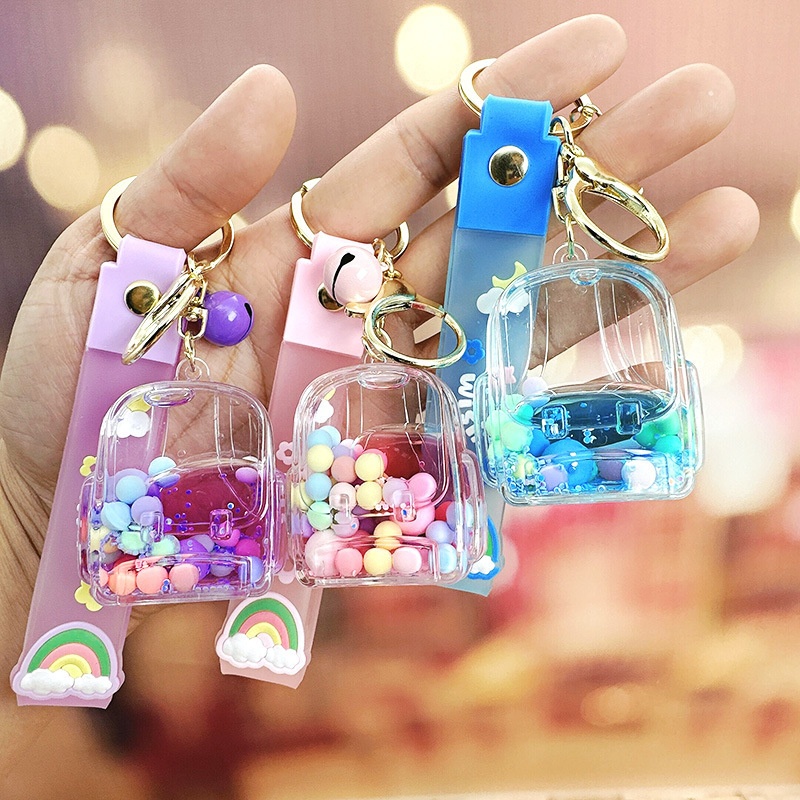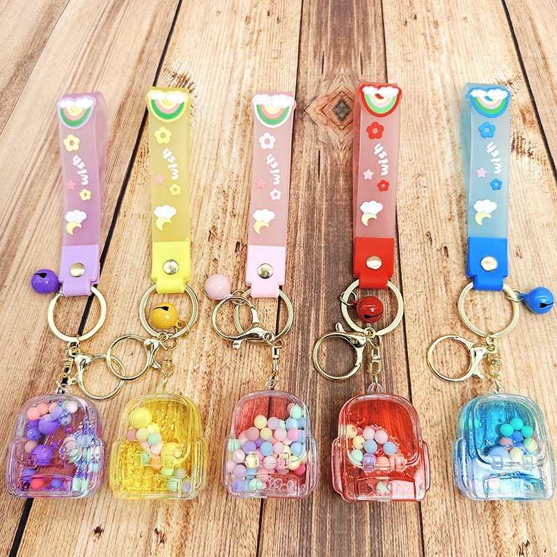 Cute Pendant Creative Exquisite School Bag Colorful Beadsy Fashion Couple Gift Sugar Bean Keychain Oil Key Chain