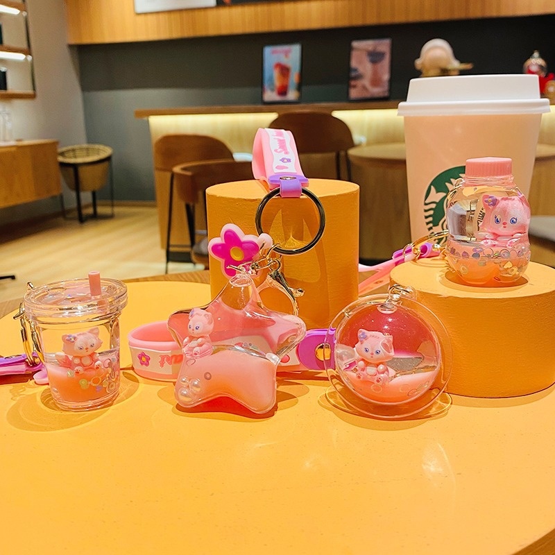 Girly Cute Little Fox Milk Tea Bottle Cartoon Creative Car Keychain APair Of Schoolbag Pendants Healing System