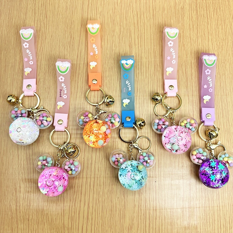 Internet Celebrity Cartoon Mickey Head Candy Quicksand Keychain Female Exquisite Cute Schoolbag Pendant Couple Bag Keychain