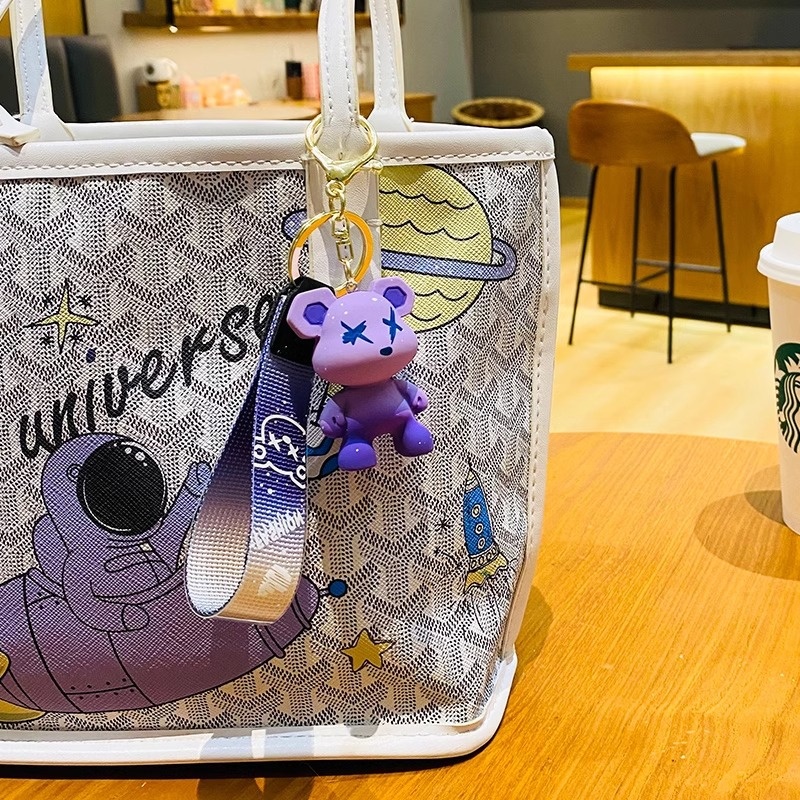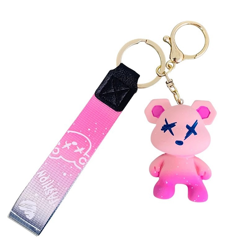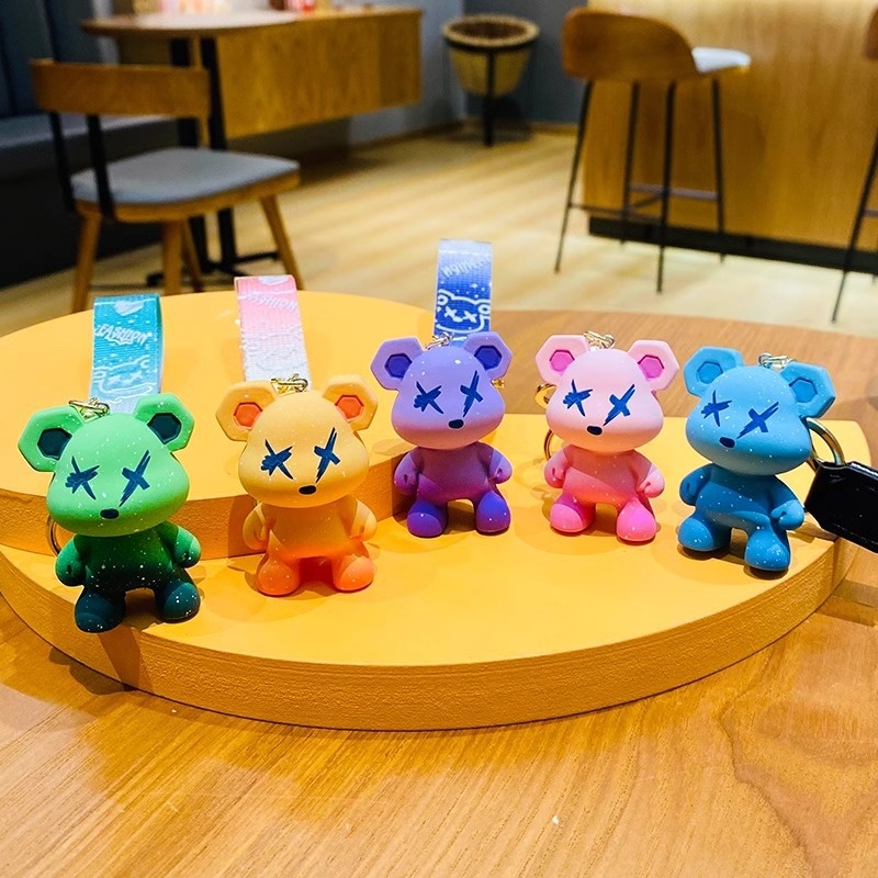 Creative Colorful Chameleon Bear Keychain Cartoon Couple Female Fashion Car Bag Keychain Pendant Key Ring