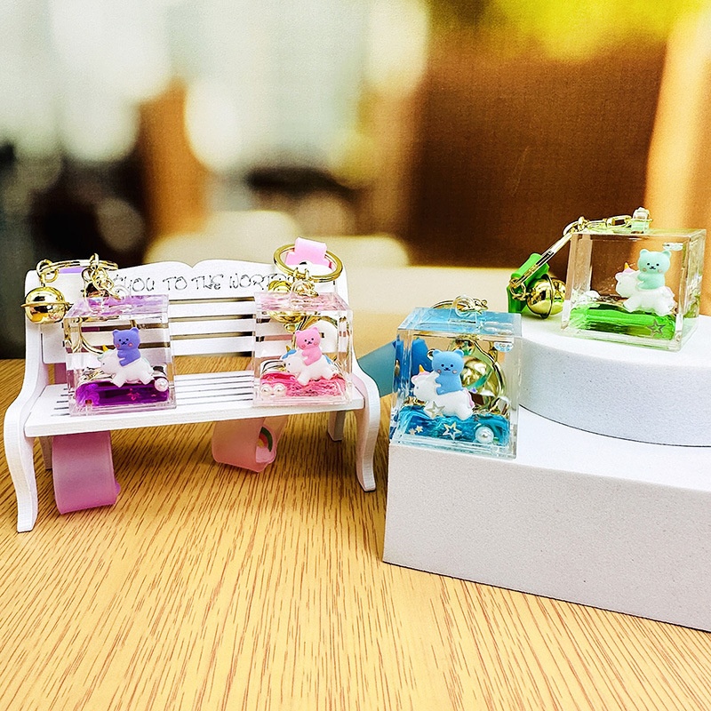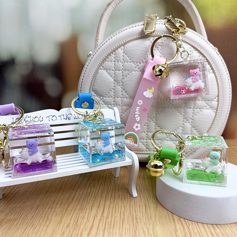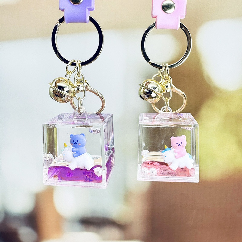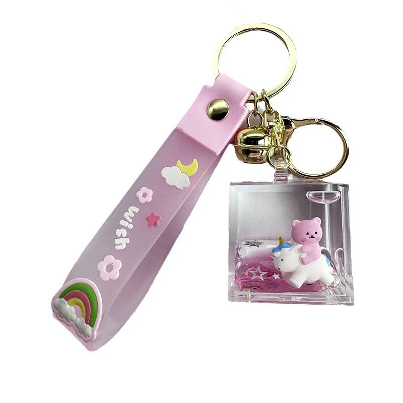 Bear Riding Quicksand Keychain Cute Cartoon Doll Acrylic Pendant Student Schoolbag Pendant Couple Keychain