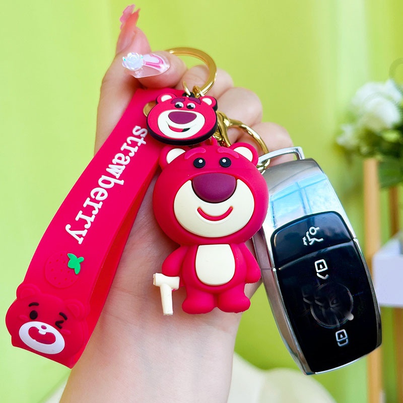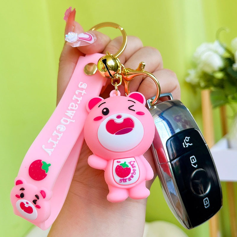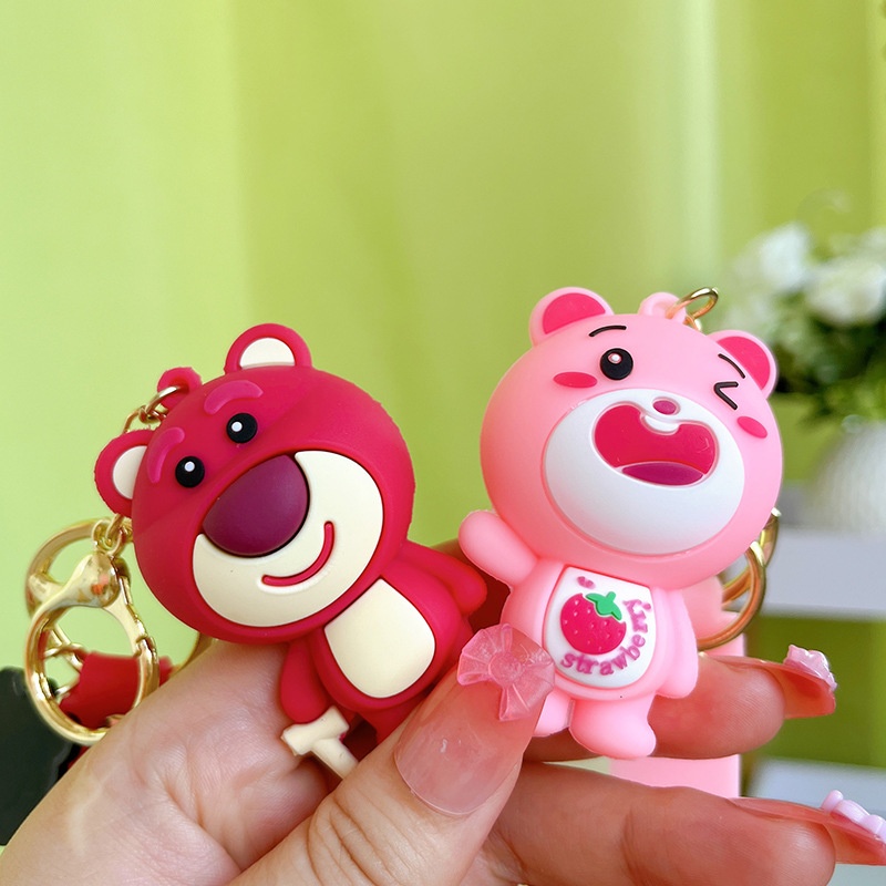 Creative Soft Glue Strawberry Bear Keychain Fashionable Couple Exquisite Cute Strawberry Bear Accessories Bag Pendant