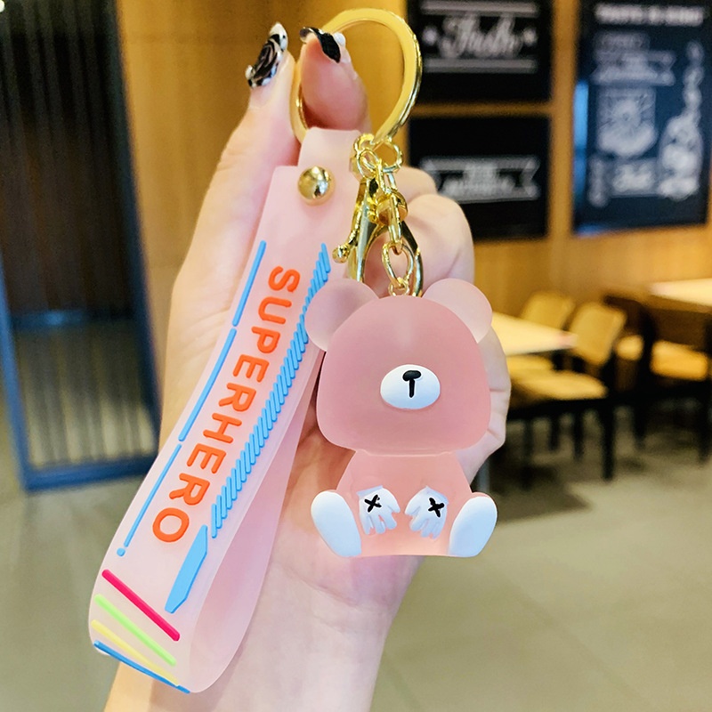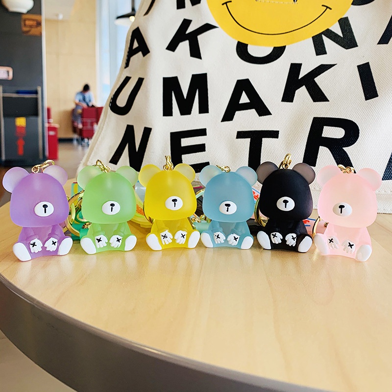 Transparent Girl Heart Palm Bear Cute Keychain Pendant Resin Bag Creative Female Cartoon Leather Rope Couple