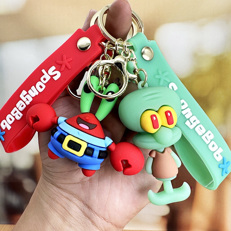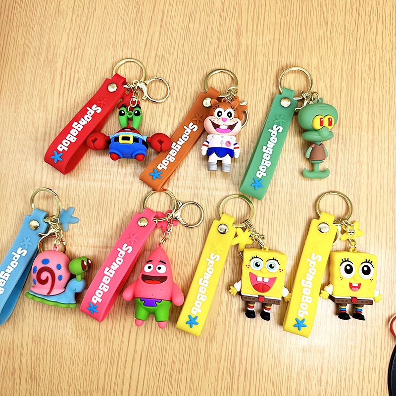 Cartoon Sponge Bob Square Pants Keychain Female Exquisite Car Keychain Pendant Cute Patrick Couple Schoolbag Pendant