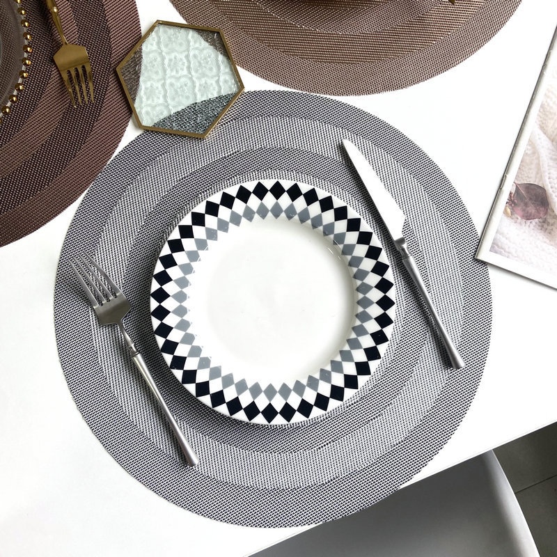 Teslin Round Placemat Hotel Restaurant PVCPlate Mat Style Dining Tableulation Pad Home Double Frame Decorative Mat