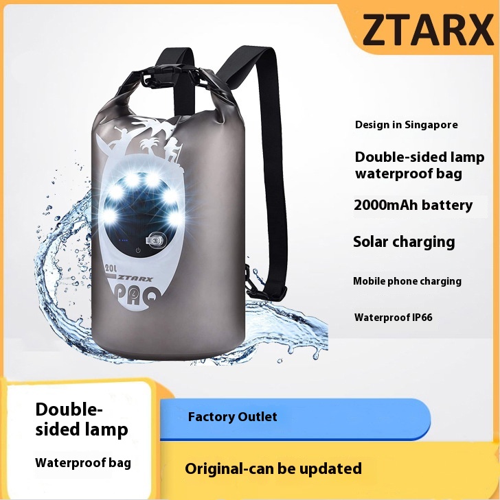 ZTARXOutdoor Waterproof Bucket Bag Beach Waterproof Backpack LEDSolar Charging Waterproof Bucket Bag Drifting Bag