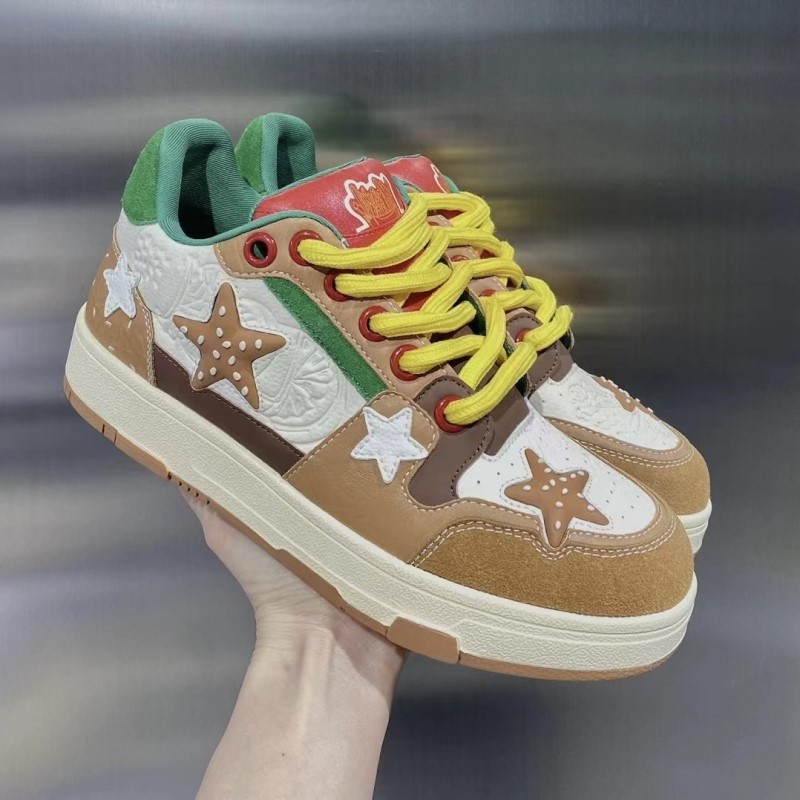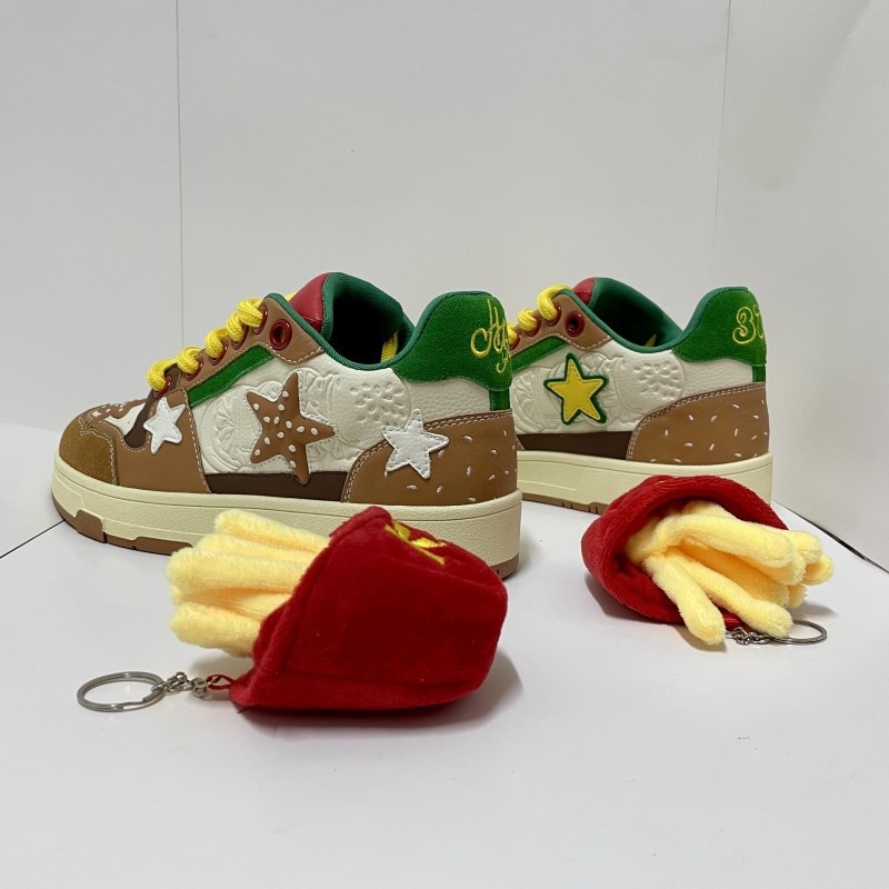 Three Jin Couple Hamburger Shoes Men's Sports Shoes Spring French Fries Hamburger Star Sneakers