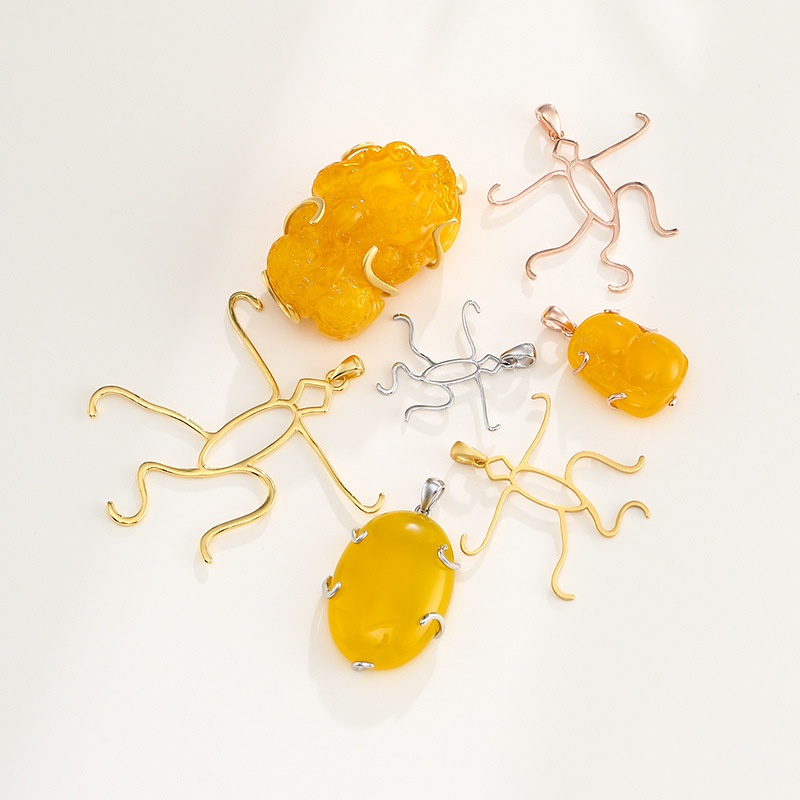 S925 Sterling Silver Pendant Empty Holder Free-standing Pendant Holder Men And Women Inlaid With Amber Beeswax Turquoise Silver Holder Necklace Pendant Holder