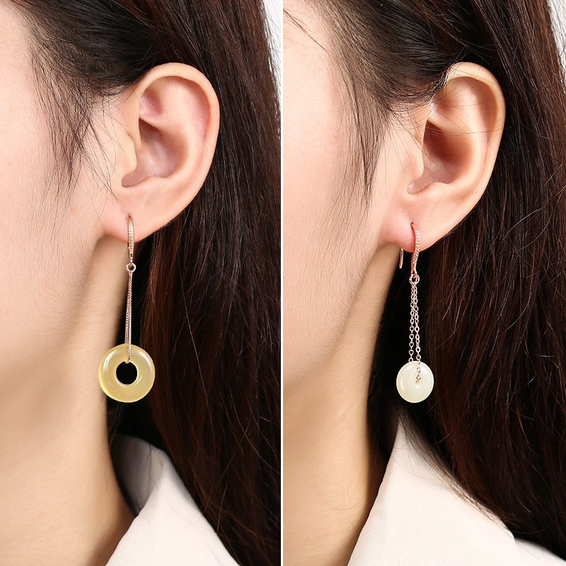 Handmade Diy Peace Buckle Earrings Empty Support925 Sterling Silver Earrings Ear Wire Inlaid Jade Peace Buckle Ear Support