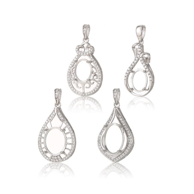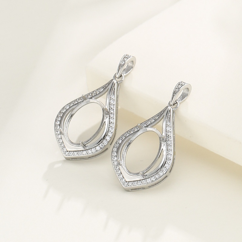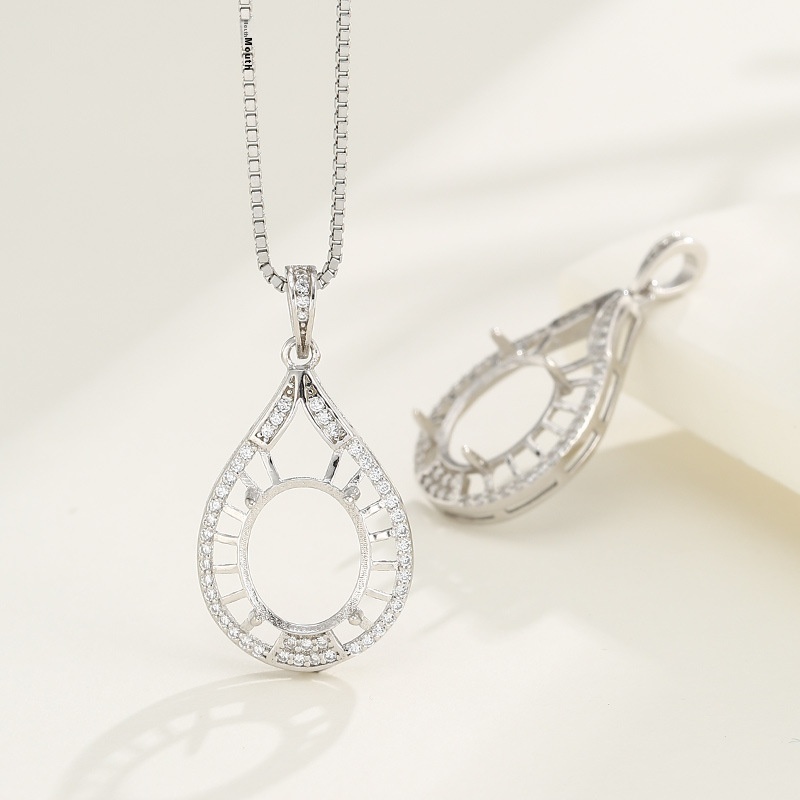 S925 Sterling Silver Pendant Empty Tray Diy Inlaid Amber Beeswax Silver Tray Light Luxury High-end Pendant Tray Accessories