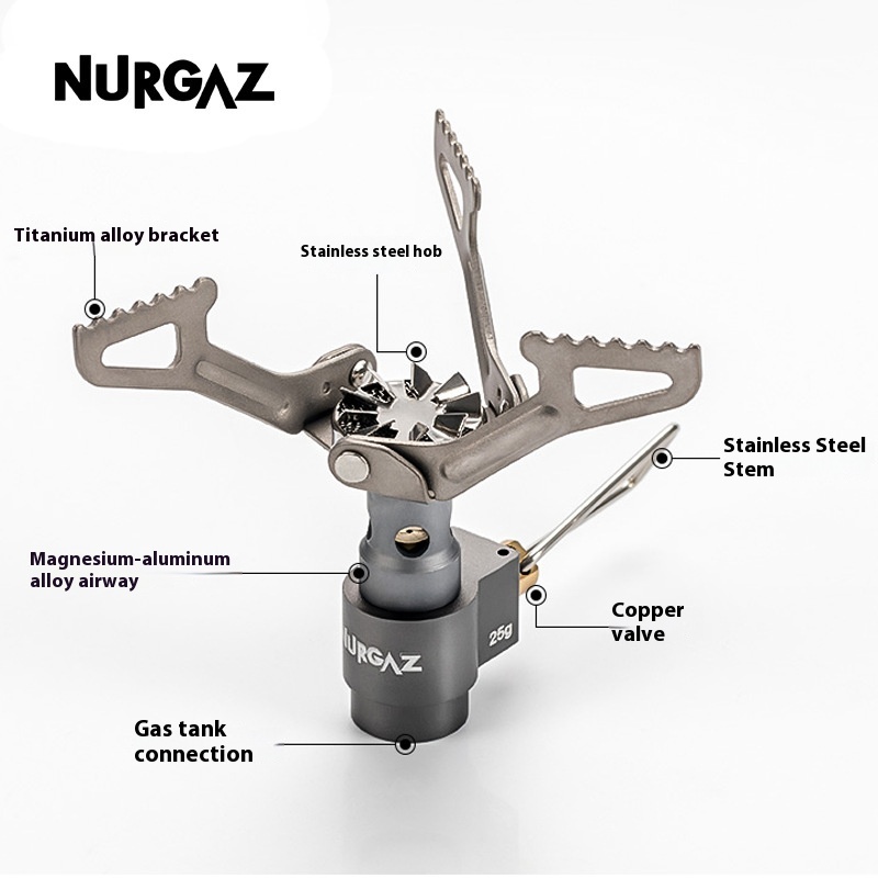 NURGAZOutdoor Stove Head Titanium Alloy Stove Head Portable Mini Gas Stove25g Camping Stove