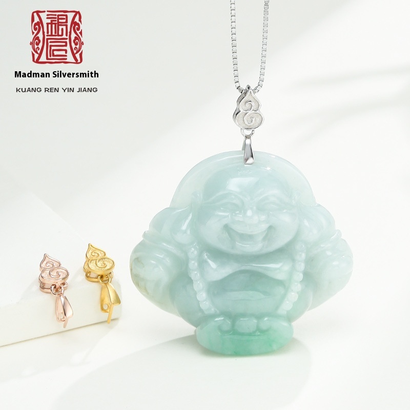 925 Sterling Silver Buddha Clip Jade Buckle Niche Design Fashionable And Simple Silver Buckle Jade Crystal Pendant Diy Clip