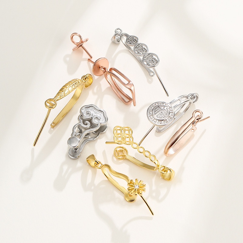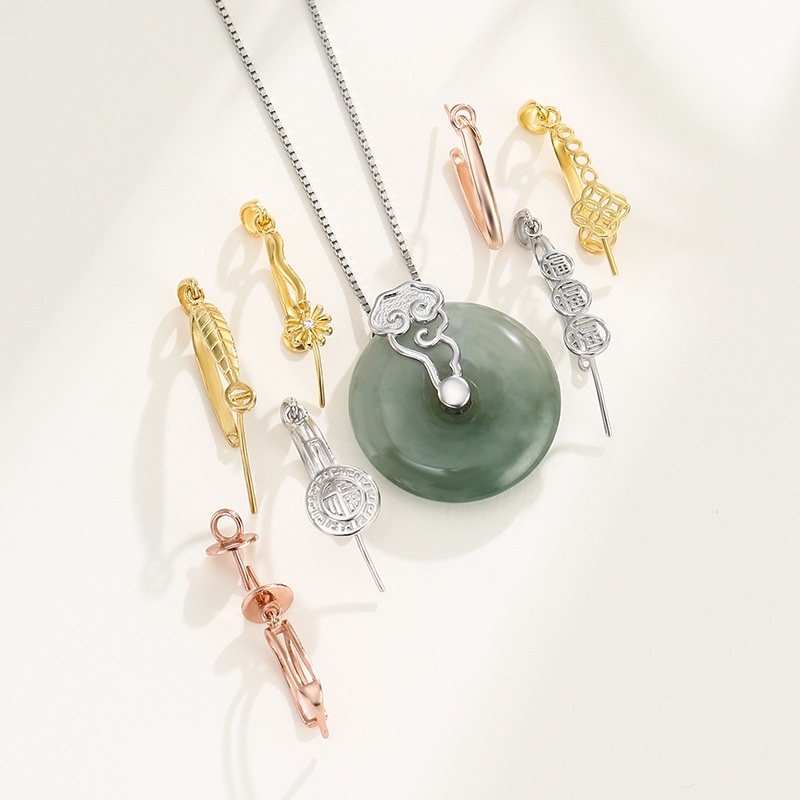 S925 Sterling Silver Peace Buckle Clip Diy Accessories Pendant Clip Beeswax Buckle Peace Jade Silver Clip Buckle Head Empty Support