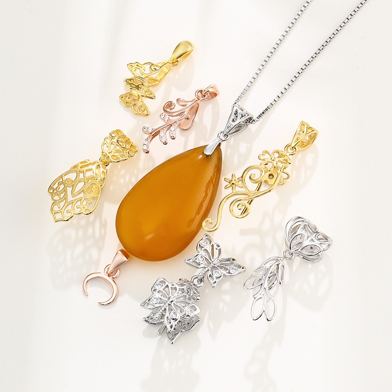 S925 Silver Pendant Buckle Female Pendant Empty Support Peace Buckle Clip18 KElectroplated Silver Jewelry Beeswax Amber Buckle Head