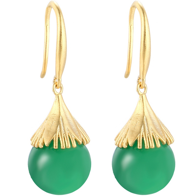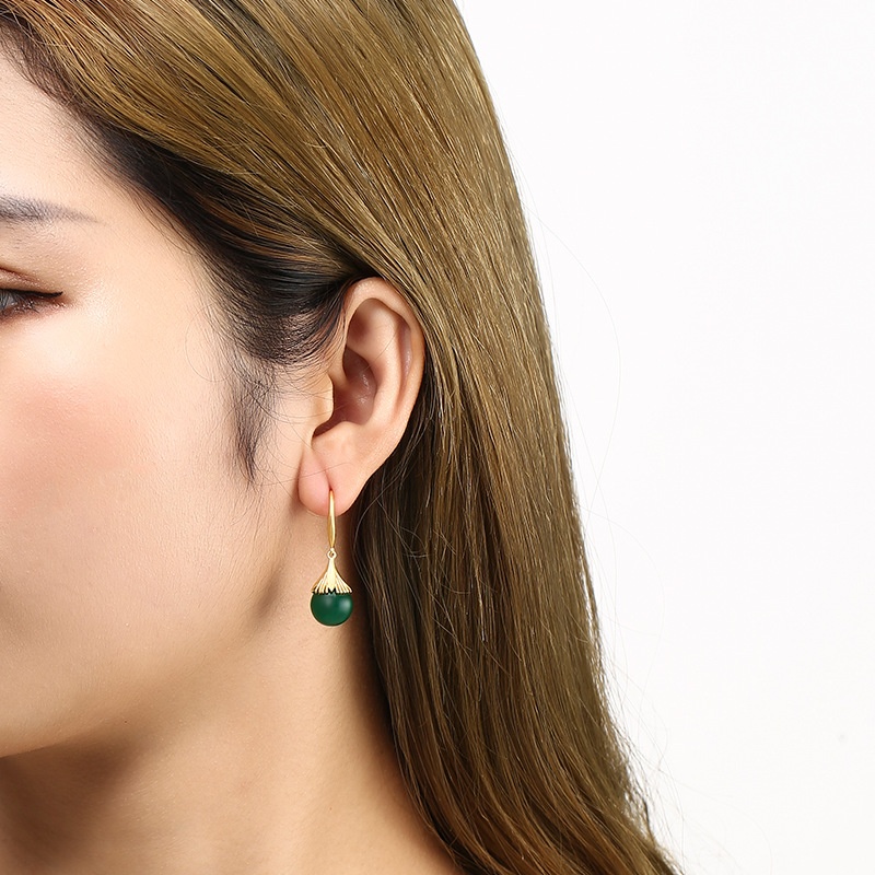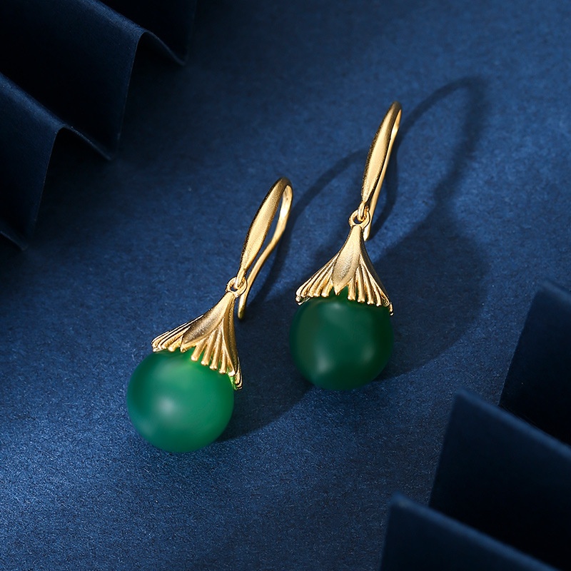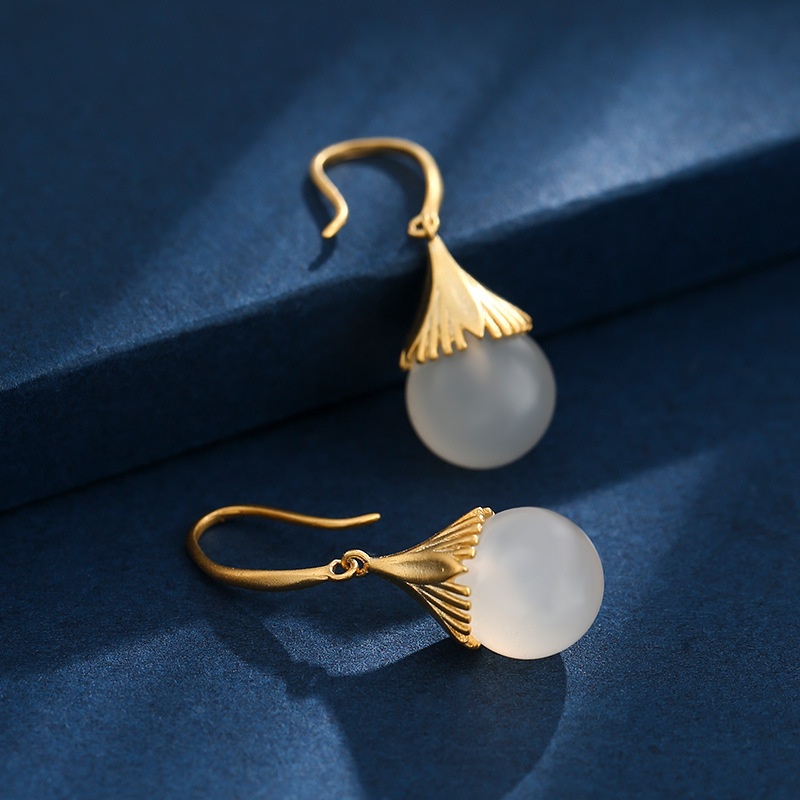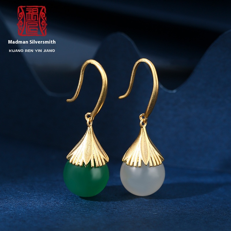 S925 Sterling Silver And Hetian Jade Earrings Straw Hat Original Design Earrings Light Luxury Atmosphere Chalcedony Ear Hook Ear Stud Earrings