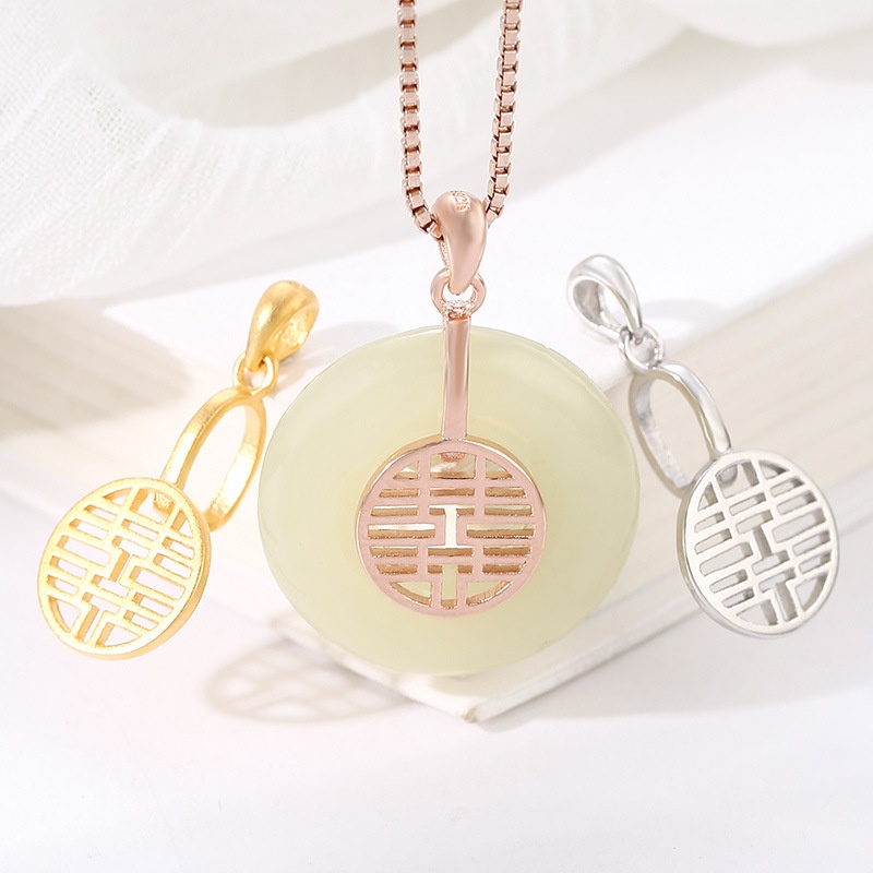 S925 Sterling Silver Retro Text Peace Buckle Clip Pendant Buckle Pendant Holder Diy Inlaid Jadeite Jade Buckle Empty Holder