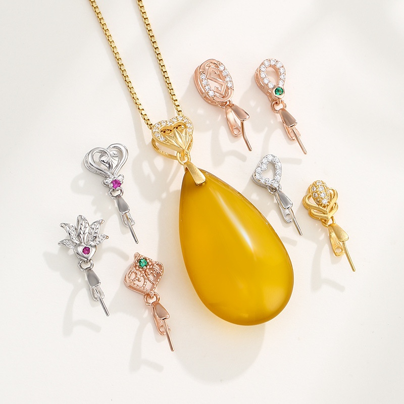 Sterling Silver Pendant Buckle Jade Pendant Buckle18 KGold Plated Buckle Women's Jade Silver Buckle Pendant Necklace Buckle Diy Accessories