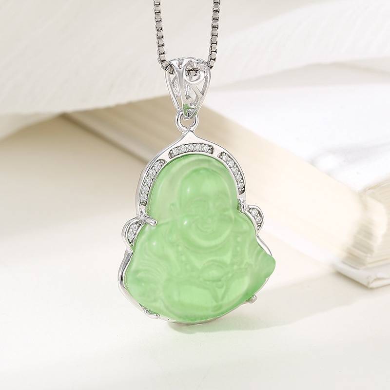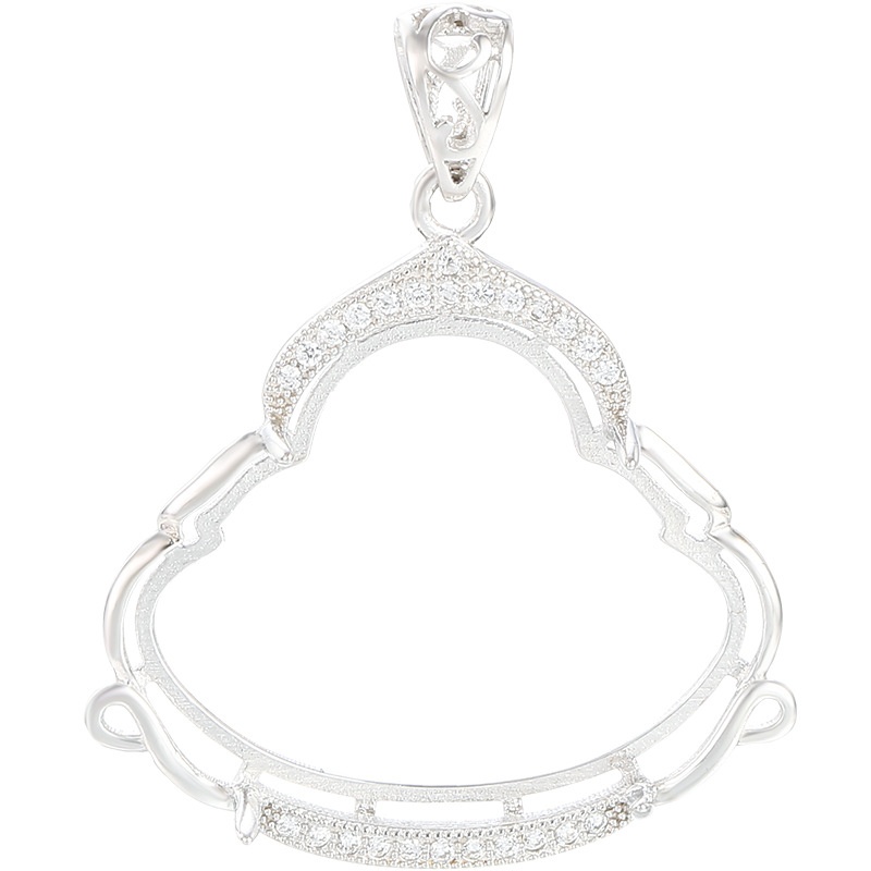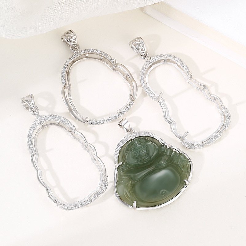 S925 Silver Buddha Jade Pendant Female Empty Support Standing Buddha Laughing Buddha Guanyin Silver Support Simple Auspicious Edge Pendant Support