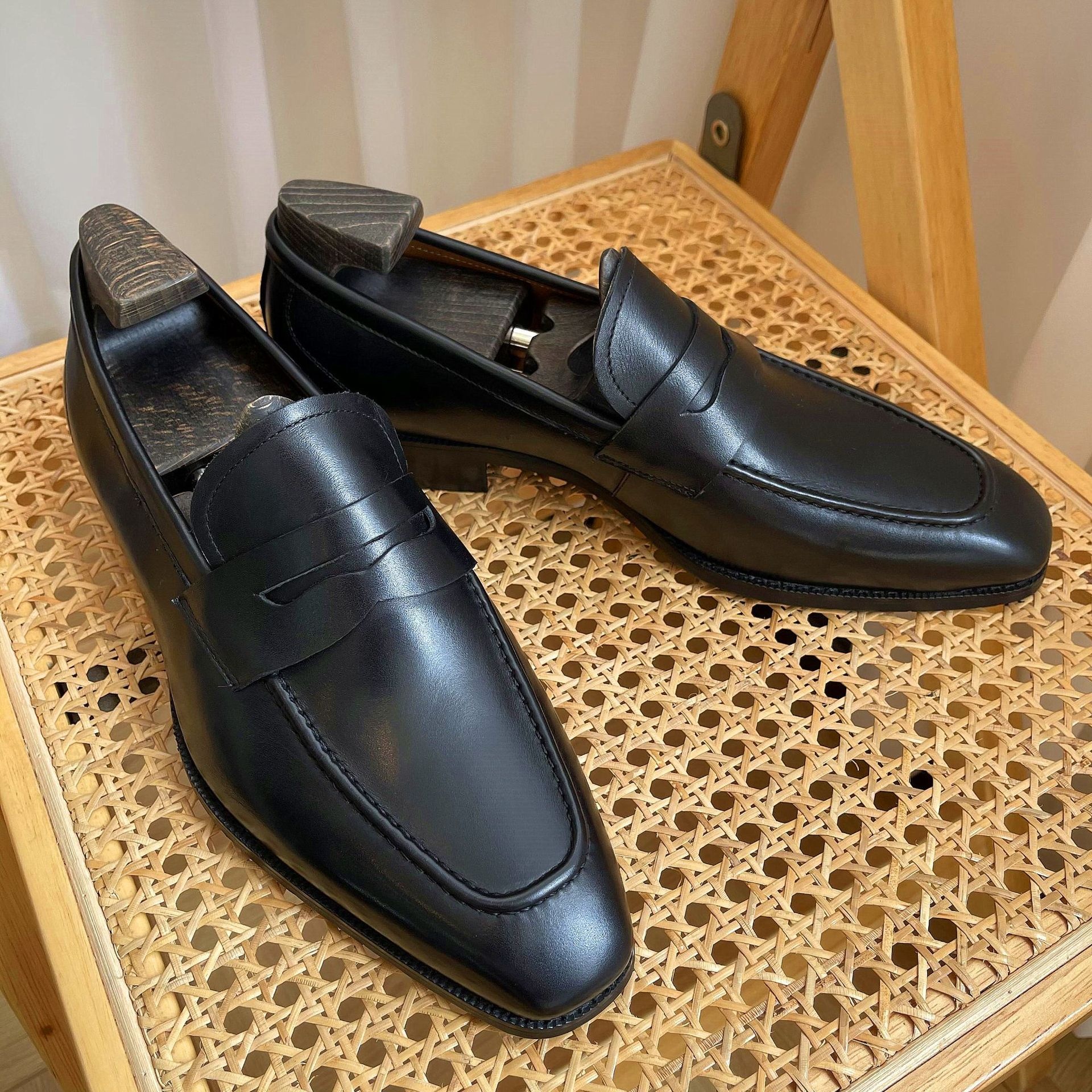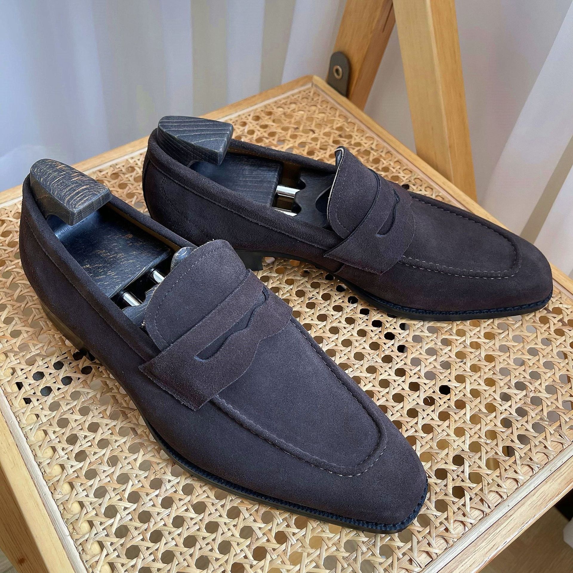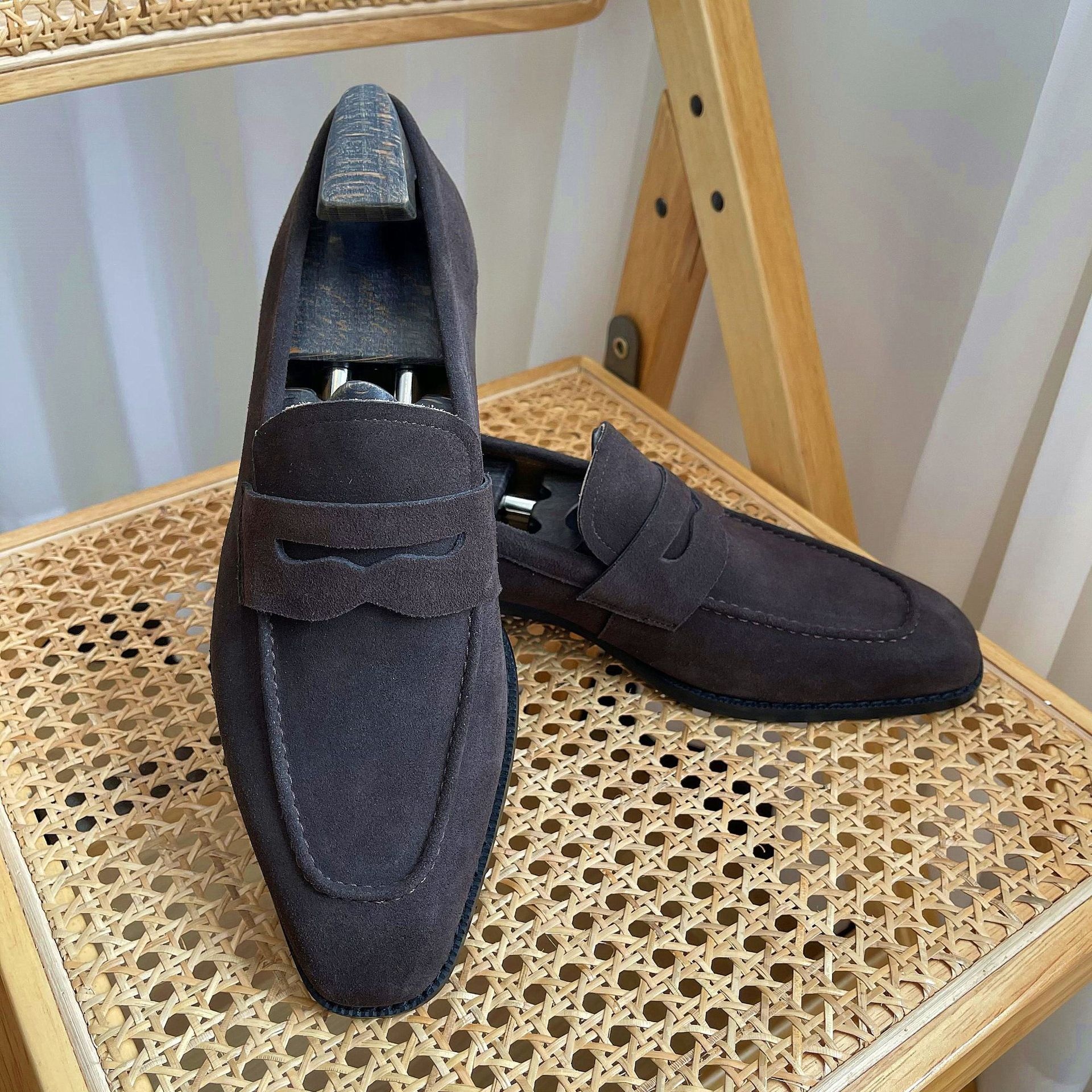 Zeyi Men's Loafer Penny Leather Shoes British Retro Cow Suede Leather Slip-on Small Square Head Men's Shoes