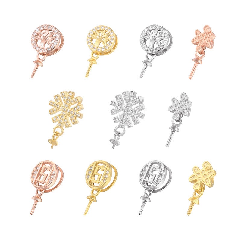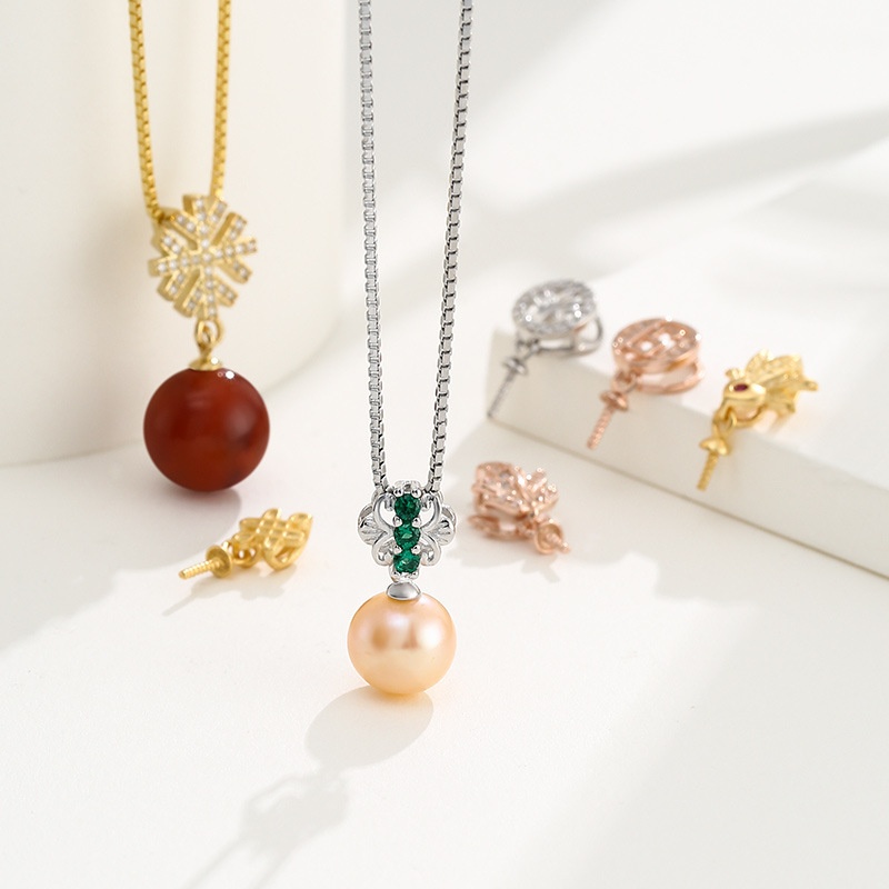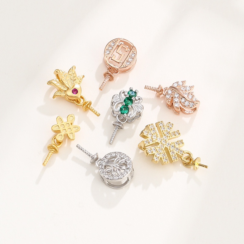 925 Sterling Silver Pendant Buckle Head Sticky Pearl Silver Pendant Empty Support Female Hand-inlaid Diy Pearl Jade Melon Seed Buckle Clip Buckle