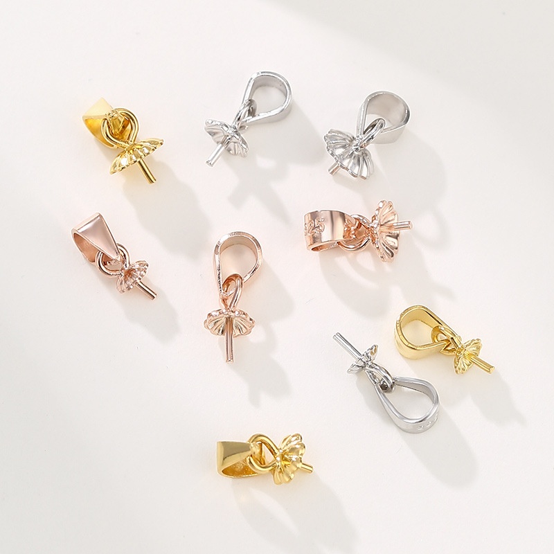 925 Silver Gold-plated Round Bead Pendant Buckle Diy Jade Buckle Jade Buckle Silver Buckle Necklace Men And Women Pendant Buckle Accessories